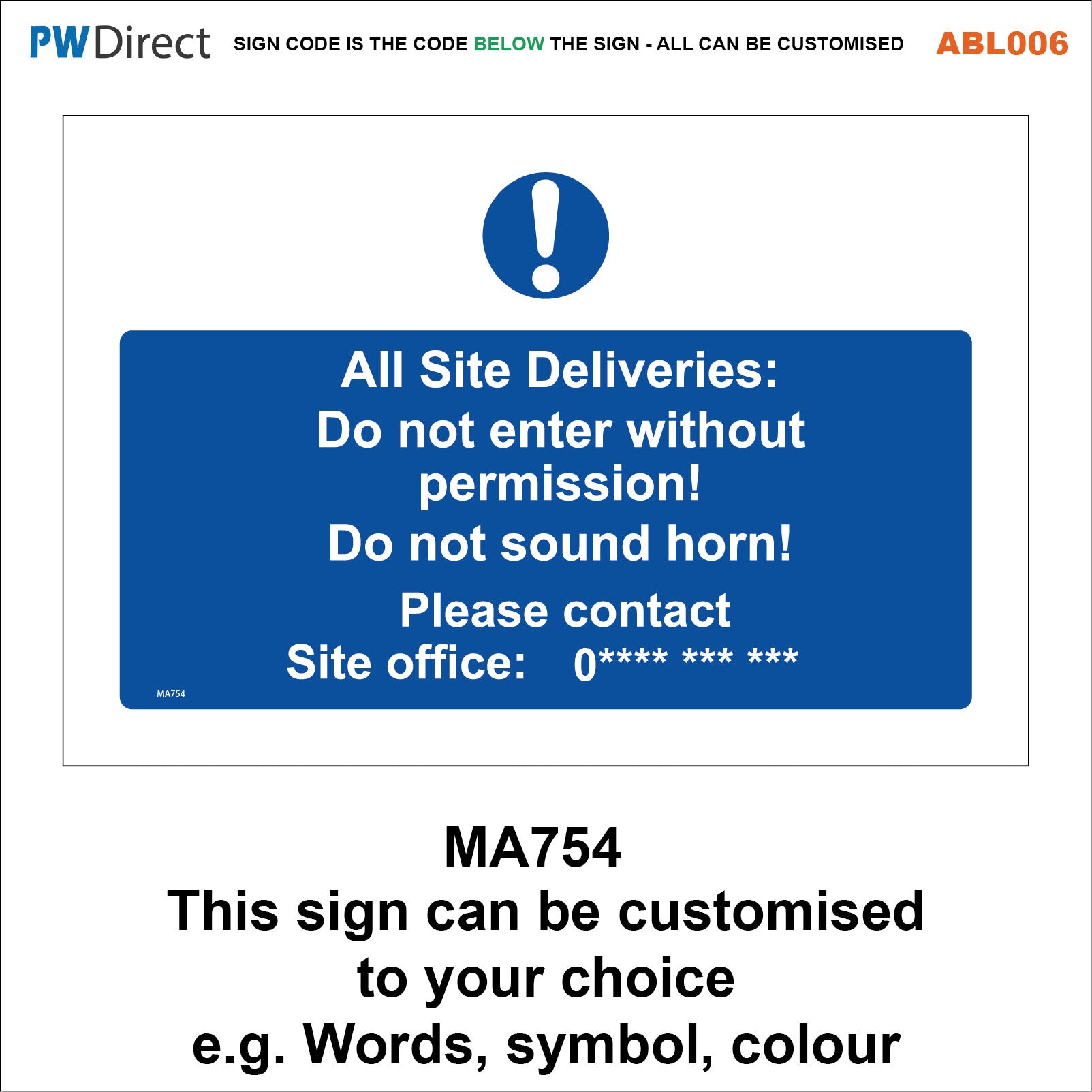 | MA754 DELIVERIES DONT SOUND HORN PHONE DETAILS | MU076 SITE SAFETY NOTICE BOARD INFORMATION | MU149 SITE ACCESS NO NHS MEDICAL TRAFFIC GATE |