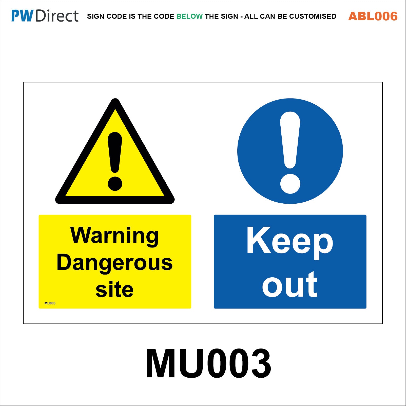 | MU138 DANGER SITE KEEP OUT YELLOW BLUE MULTI | MU003 WARNING DANGEROUS NO ADMITTANCE ACCESS | MU070 TRESPASSING PRIVATE RESTRICTED NOT PERMITTED |