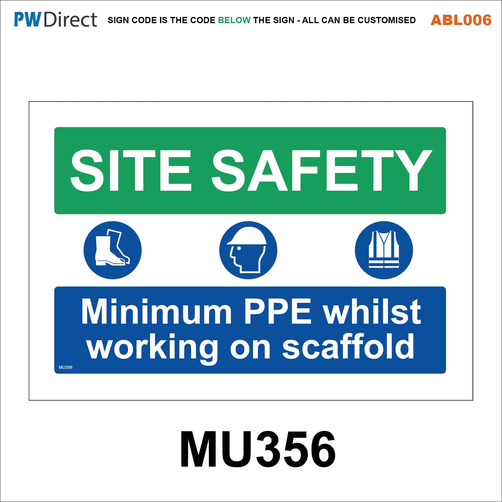 | MU356 MINIMUM PPE WHILST WORKING ON SCAFFOLDING | MU315 NO GLOVES HAND COVERINGS WORN ALL TIMES | MU360 YOUR DETAILS HANDMADE SITE SAFETY NOTICE |