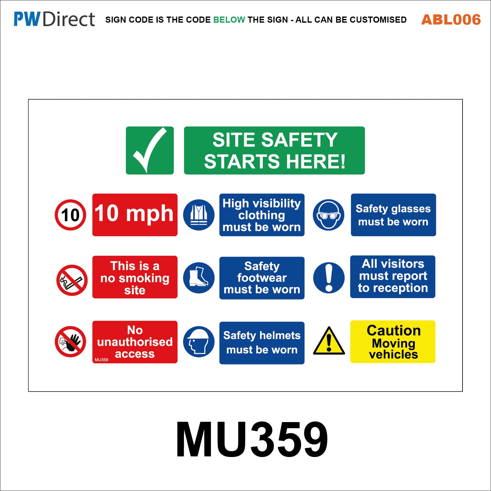 | MU357 LOGO SYMBOL DESIGN TICK GOGGLES GLASSES | MU358 CHOICE SELECT VISITORS RECEPTION | MU359 SITE SAFETY STARTS HERE NOTICE BOARD |
