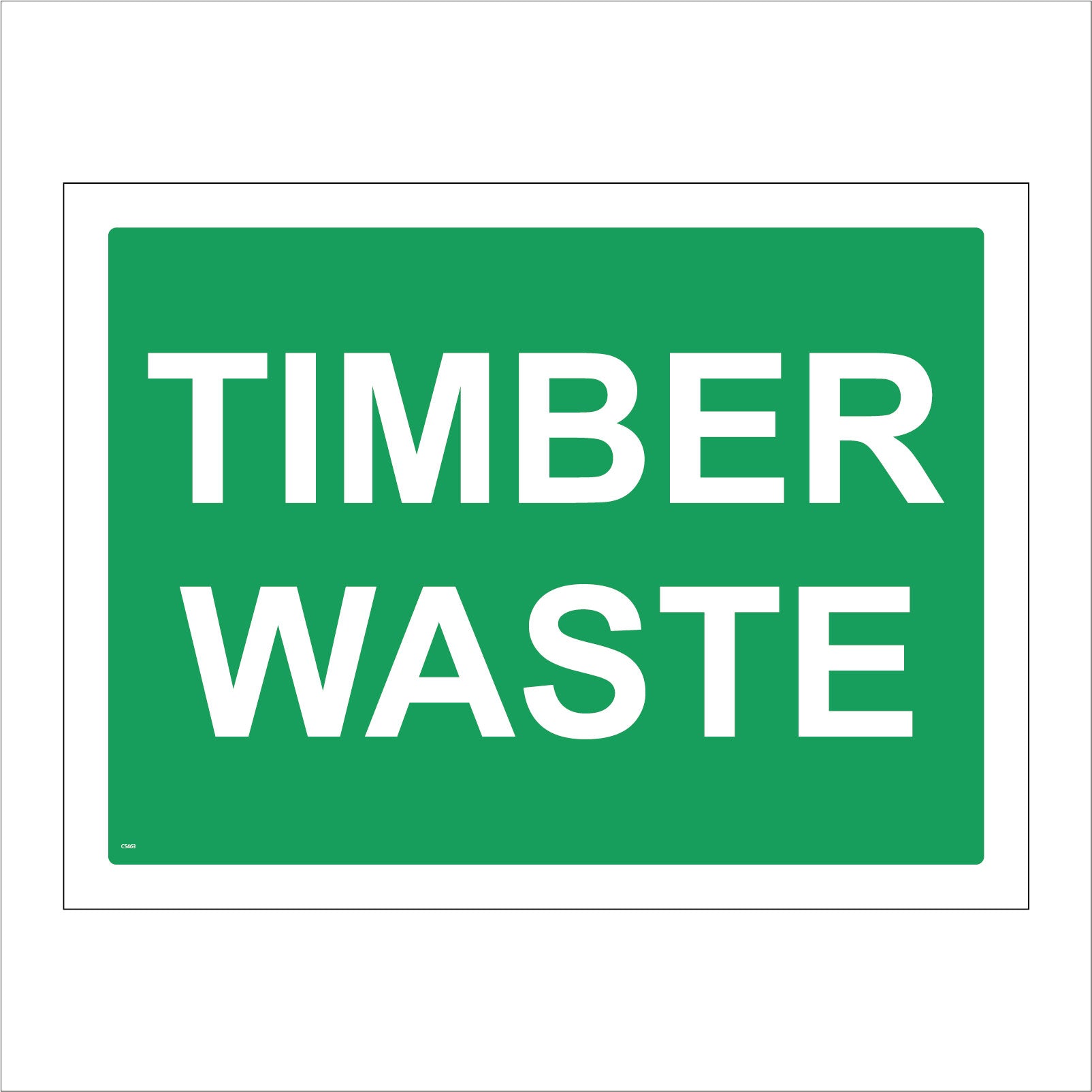 The format of the standard CS463 sign is Billboard Landscape and displays a White /Timber Waste Recycling Waste Skip Bin text on a Green Background.