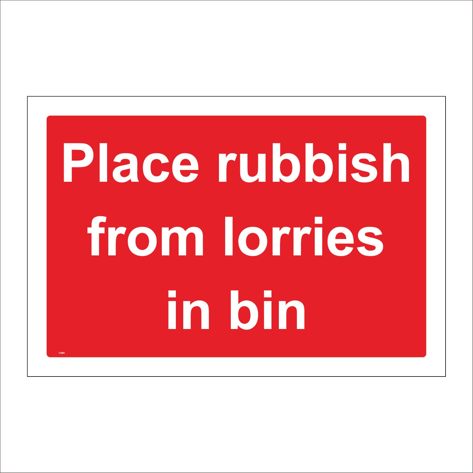 The CS491 Place Rubbish From Lorries In Bin Do Not Litter is part of our Construction Sign Range.