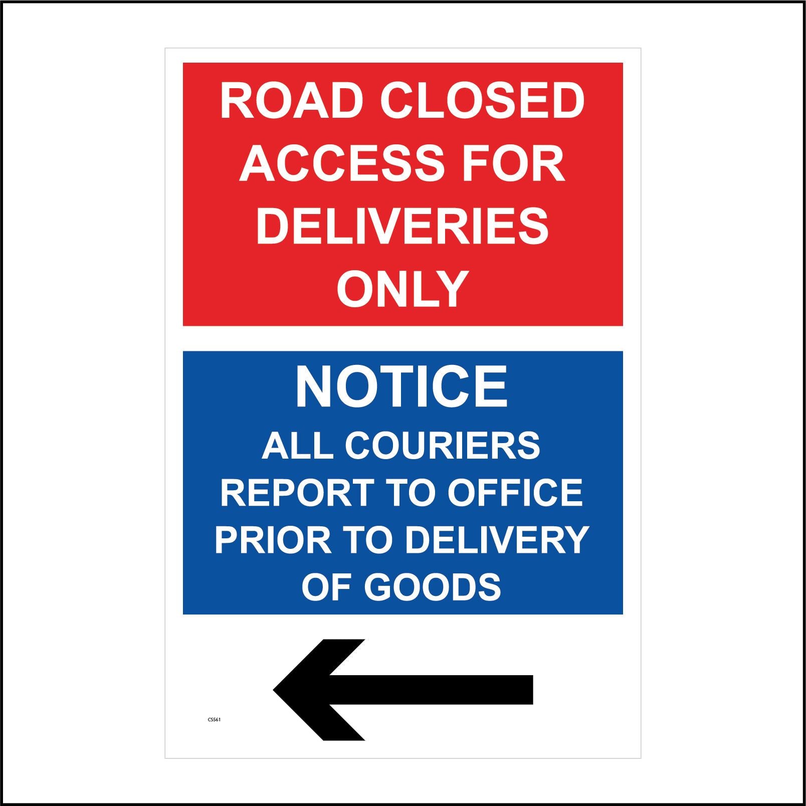 CS561 Road Closed Notice Left Arrow No Entry Direction Goods Post