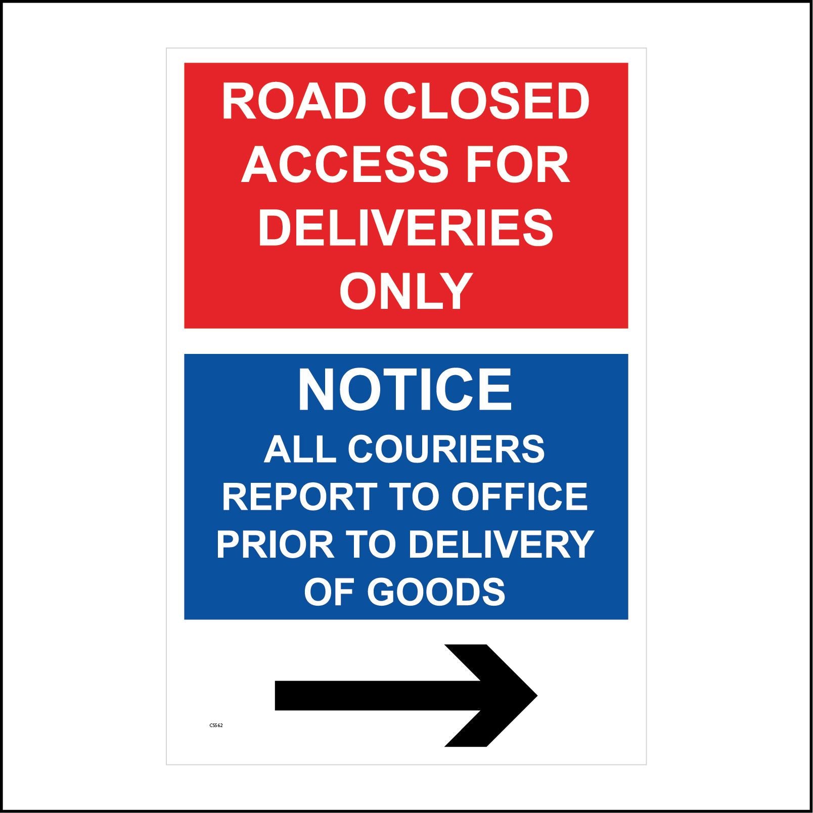 CS562 Road Closed Notice Right Arrow No Entry Direction Goods Post