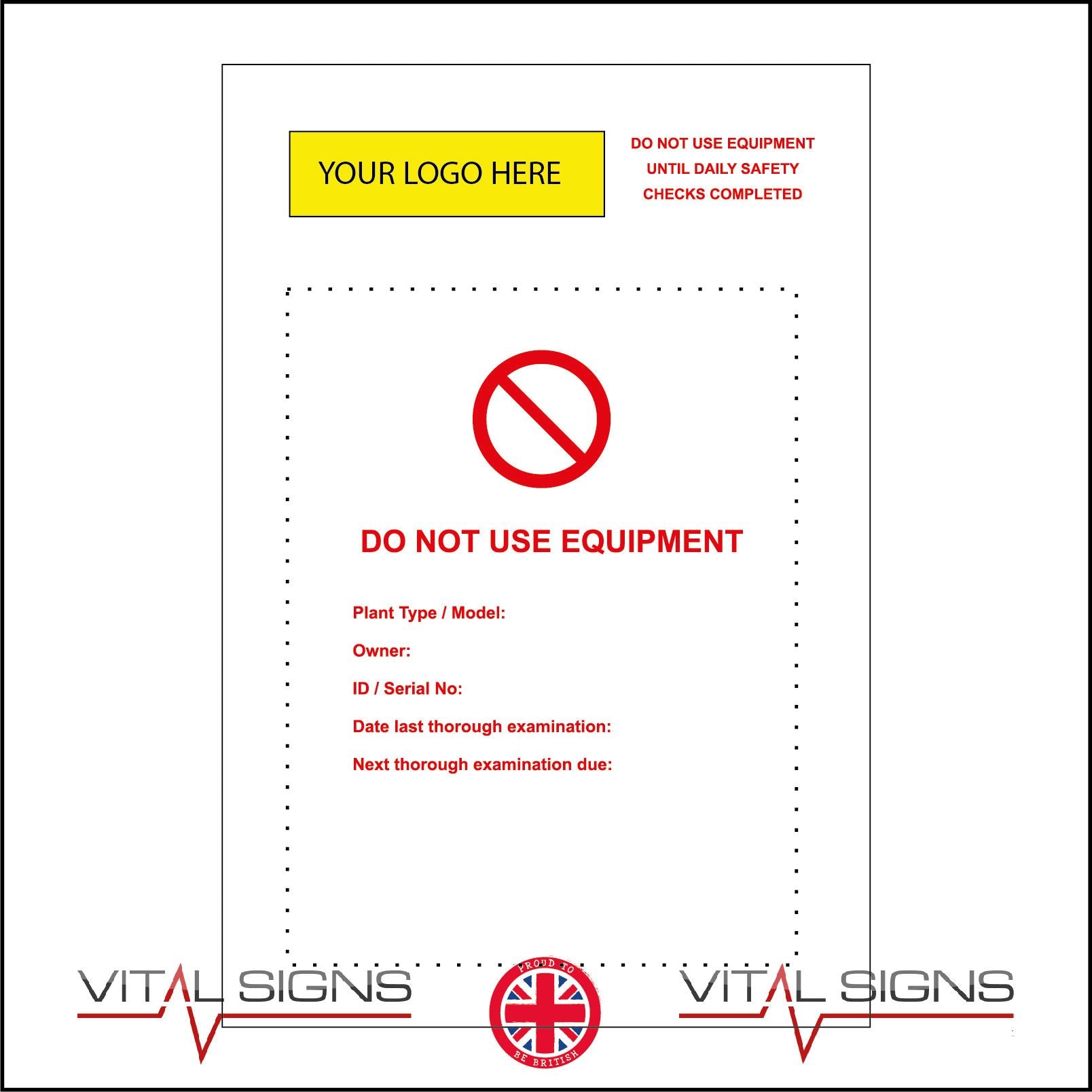 The CS569 Do Not Use Equipment Safety Check Tag Logo Name Company is part of our Construction Sign Range.