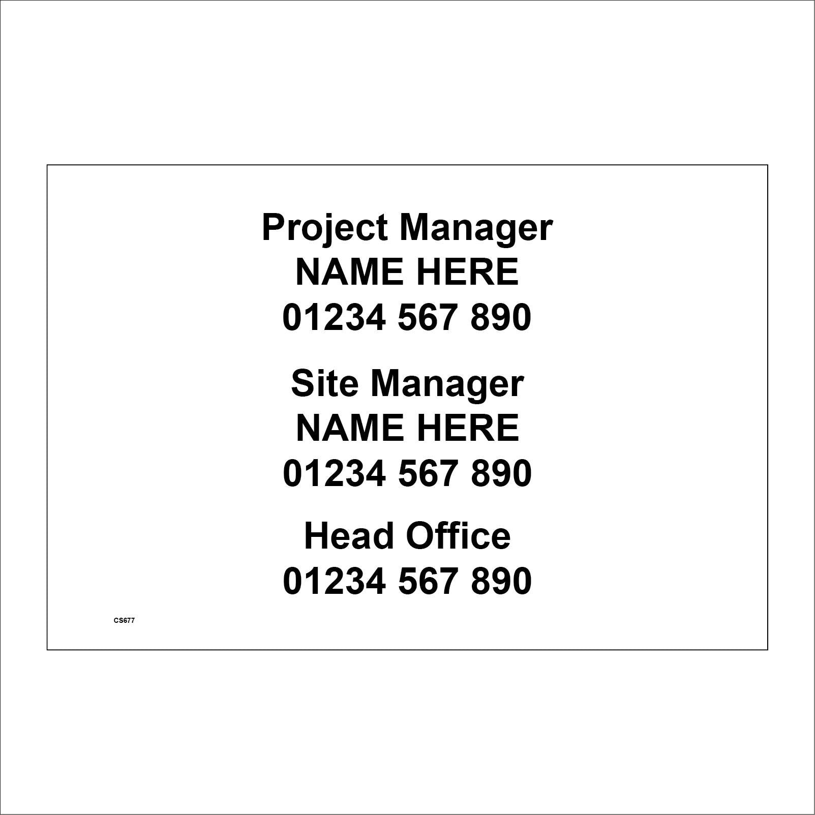 The CS677 Project Site Manage Phone Made to Order Custom Details is part of our Construction Sign Range.
