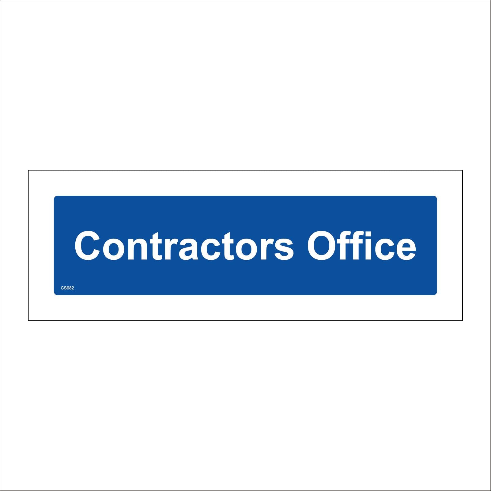 The format of the standard CS682 sign is Long Landscape and displays a Blue /Contractors Office White On Blue Plaque text on a White Background.