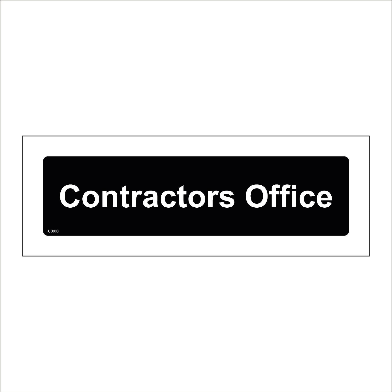 The format of the standard CS683 sign is Long Landscape and displays a White /Contractors Office White On Black Plaque text on a Black Background.