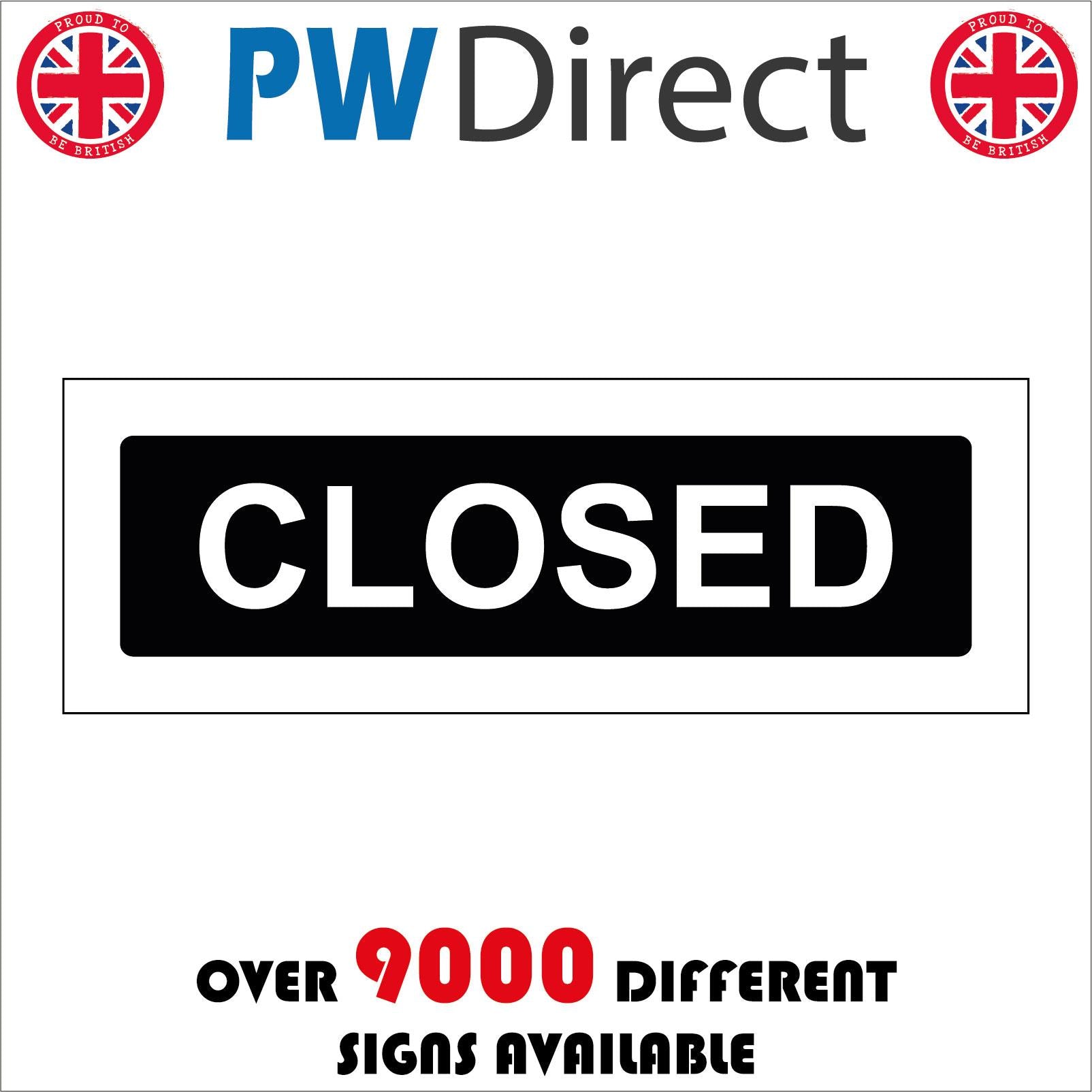The format of the standard CS687 sign is Long Landscape and displays a White /Closed Business Door Plaque Shop Shut text on a Black Background.