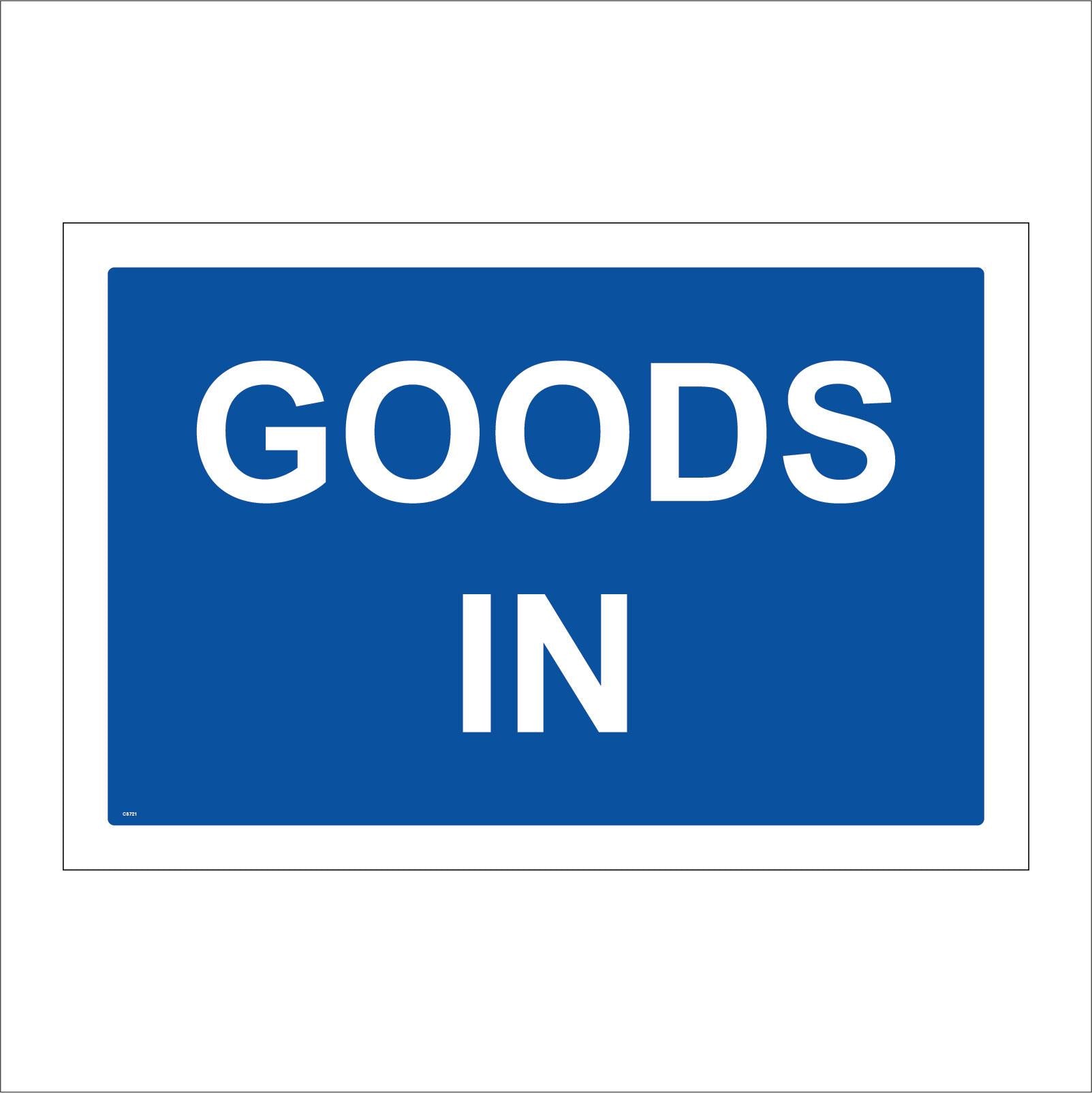 The format of the standard CS721 sign is Billboard Landscape and displays a White /Goods In text on a Blue Background.