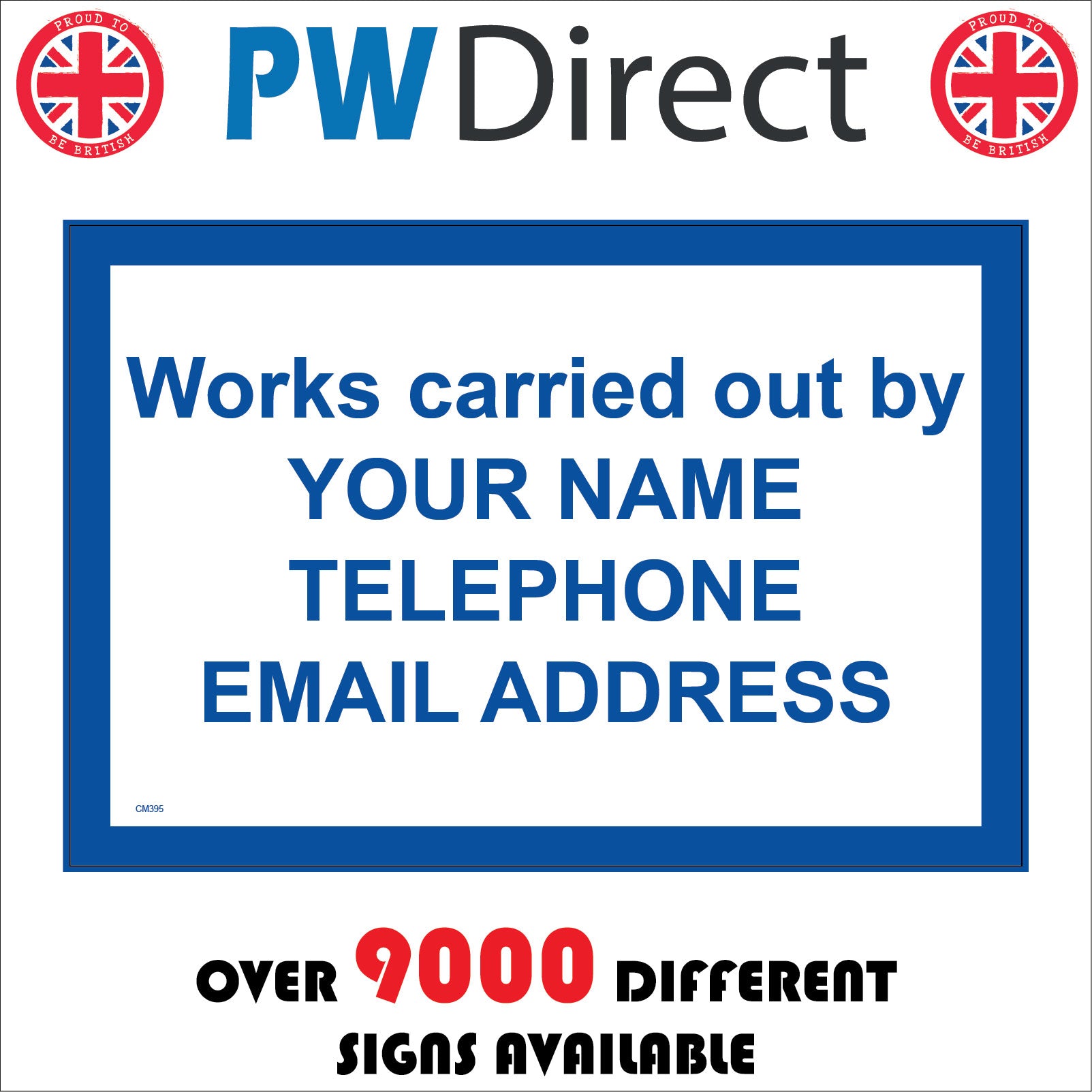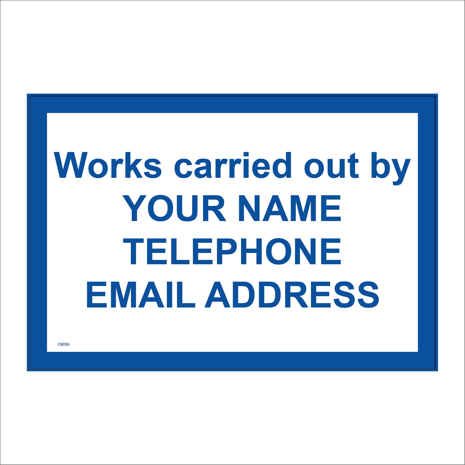 The CM395 Works Carried Out By Deatils Contractor Name Phone Website Email is part of our Custom Sign Range.