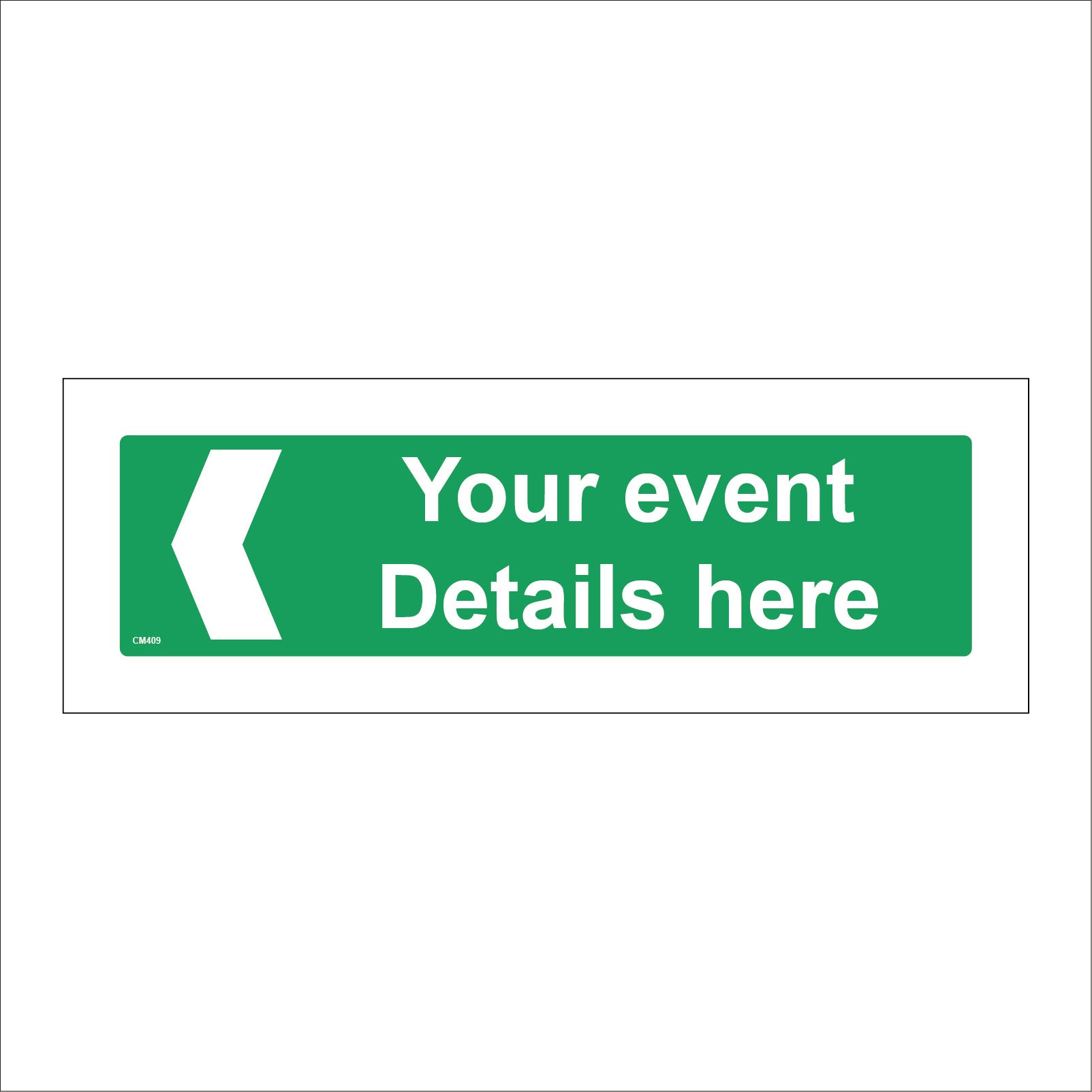 The CM409 Your Words Details Activity Location Left Arrow Green Route is part of our Custom Sign Range.
