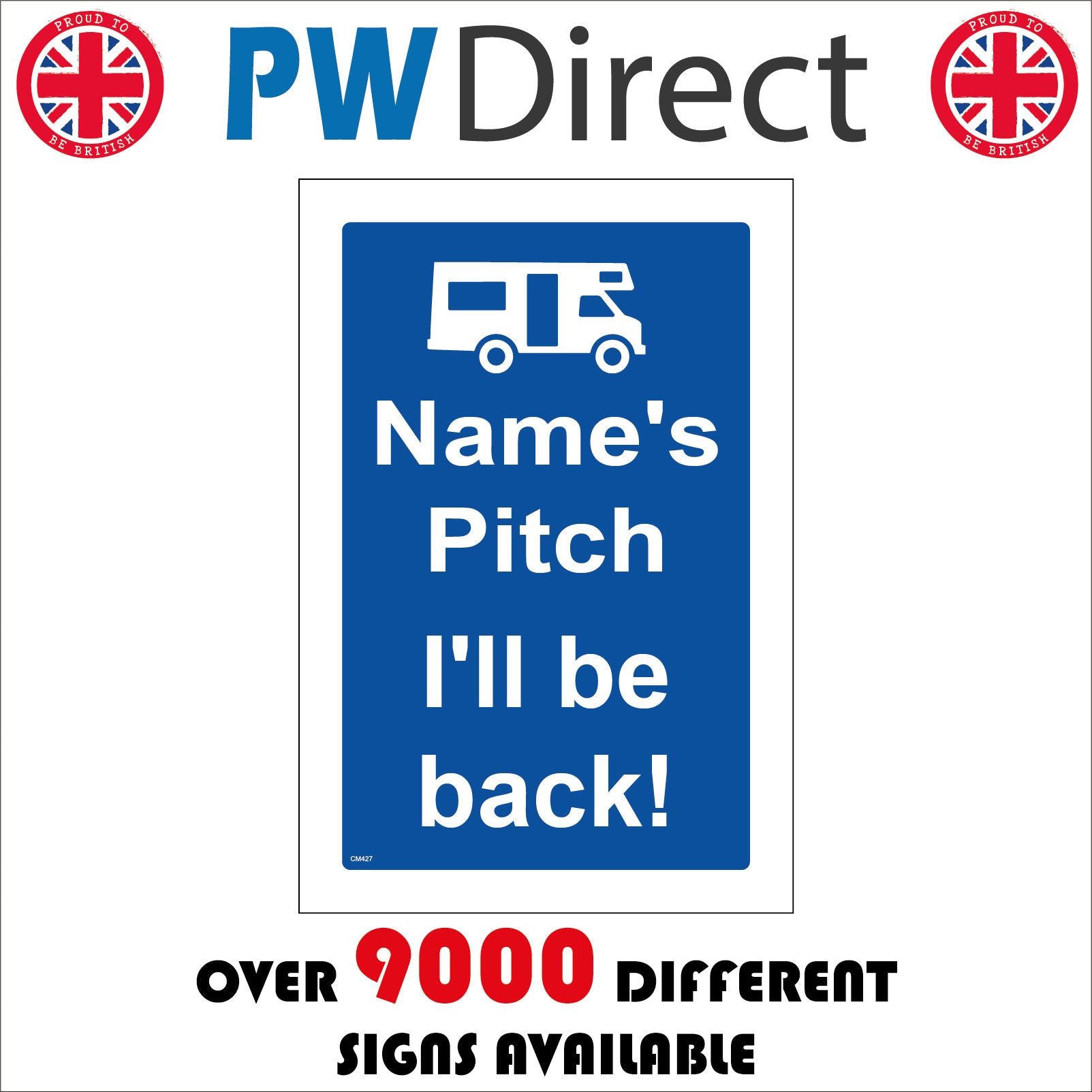 | Where to use: Campsite/Bed & Breakfast | Popular choices: Name Choice Pitch Will Be Back Customise Personalise Plastic Sign |