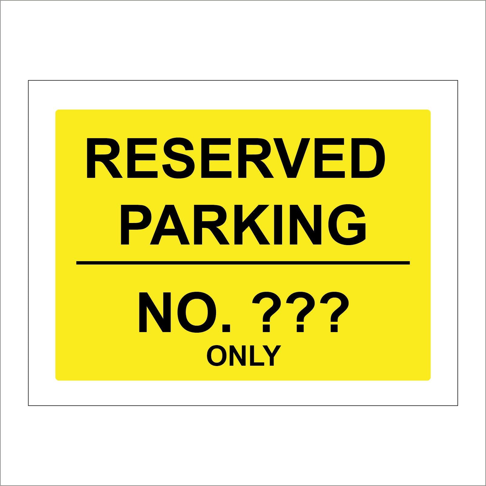 | Supplied in: Single | Text of sign: Reserved Parking No Personalise Your Text Choice Words Only | |