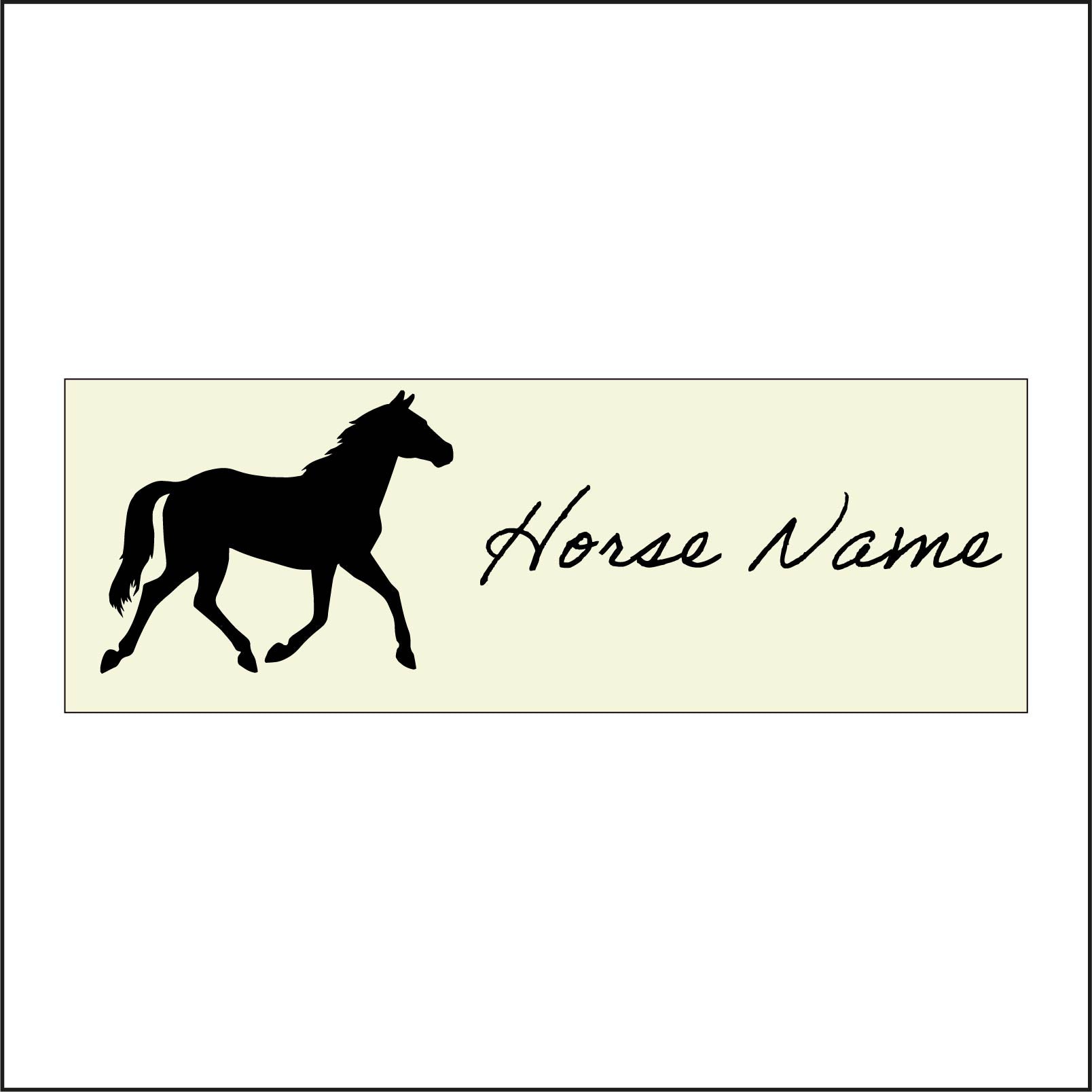 The format of the standard CM999 sign is Long Landscape and displays a Black Horse/Horse Name text on a Cream Background.