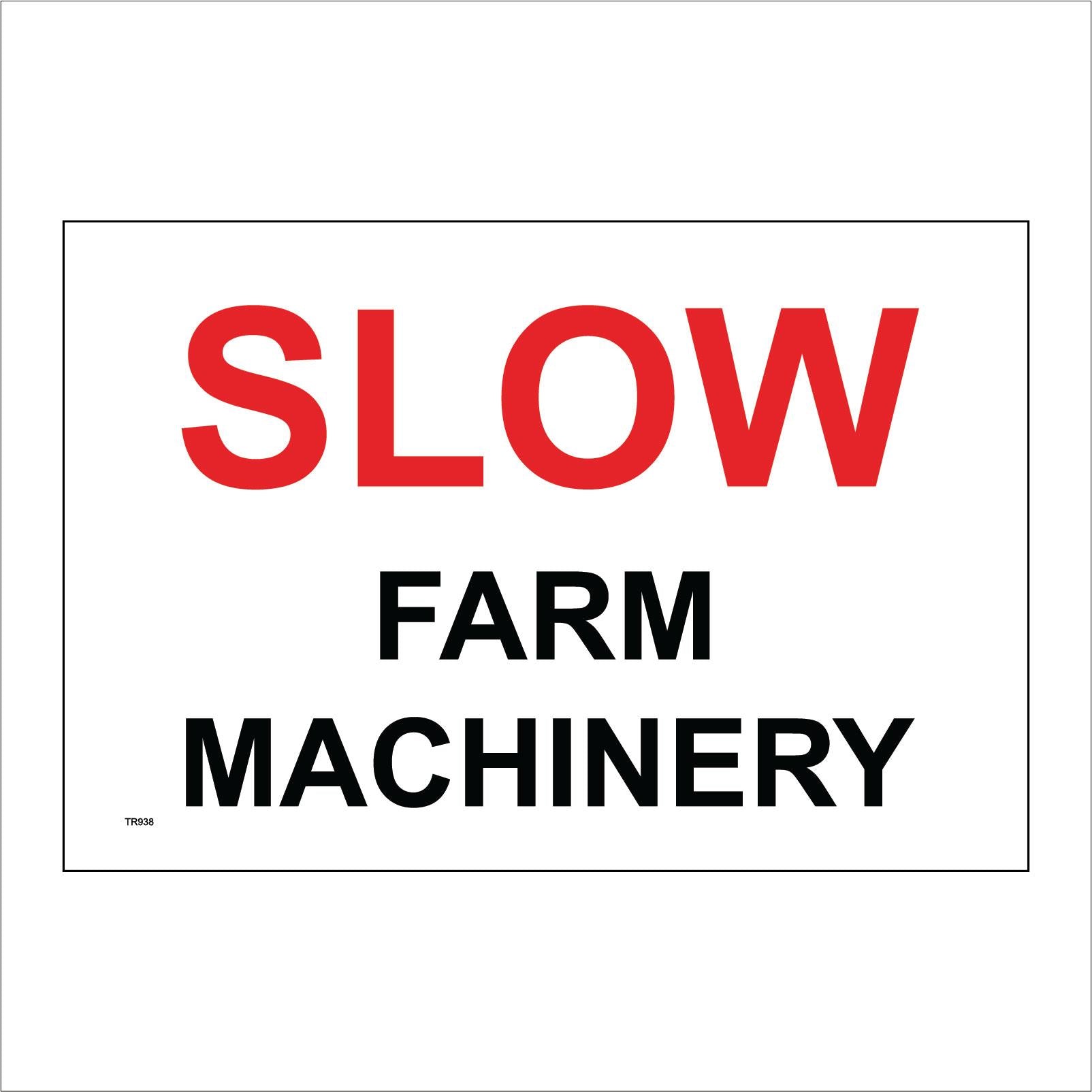 The format of the standard TR938 sign is Billboard Landscape and displays a Red/Black /Slow Farm Machinery text on a White Background.