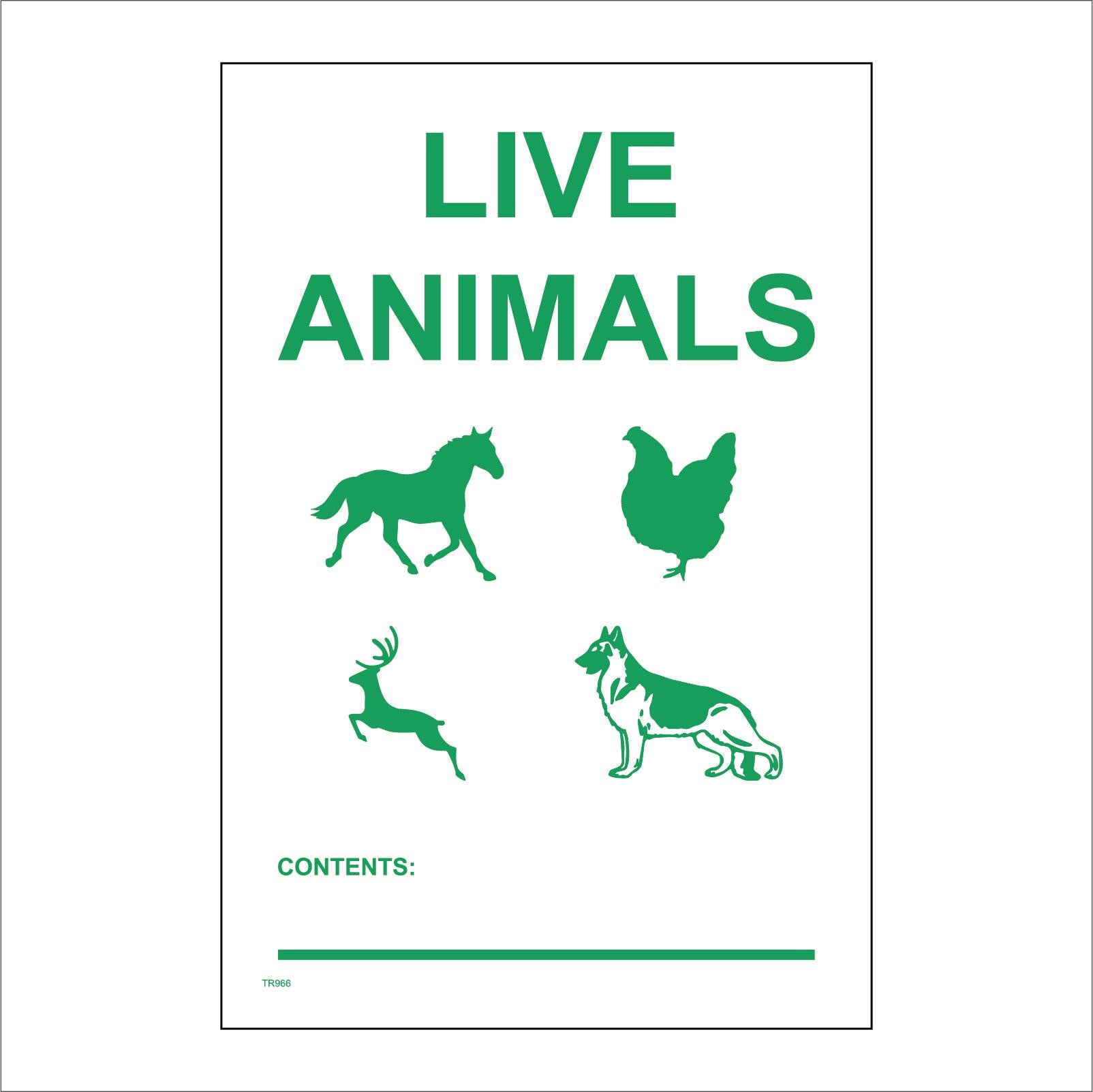 The format of the standard TR966 sign is Billboard Portrait and displays a Green Horse Dog Chick Deer/Live Animals text on a White Background.