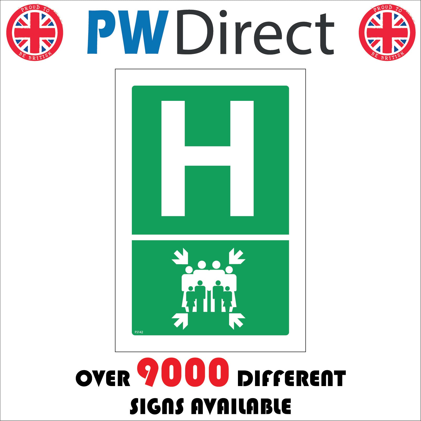 The FS142 Fire Assembly Point H Sign with Arrows People is part of our Fire Safety Sign Range.