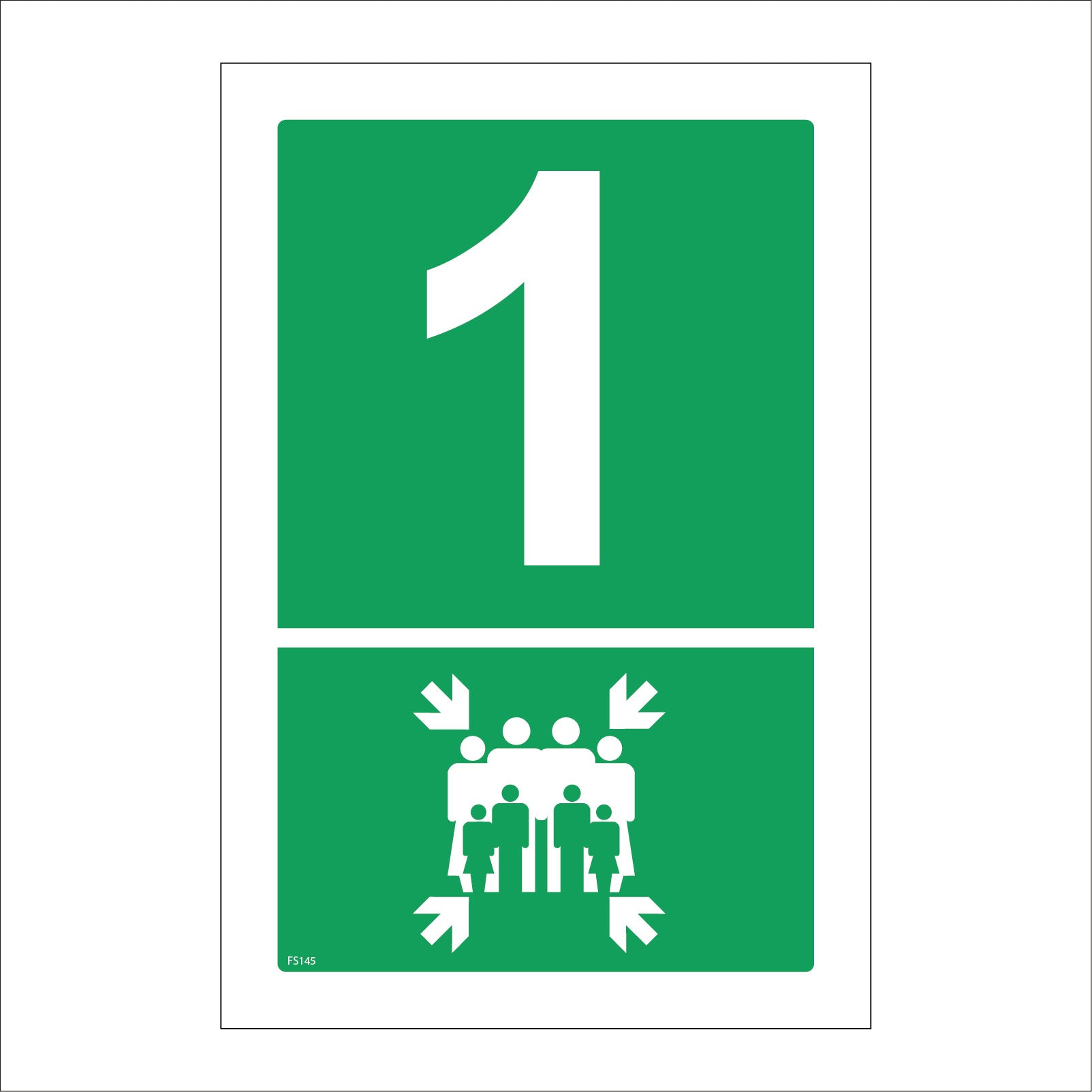 The FS145 Fire Assembly Point 1 Sign with Arrows People is part of our Fire Safety Sign Range.
