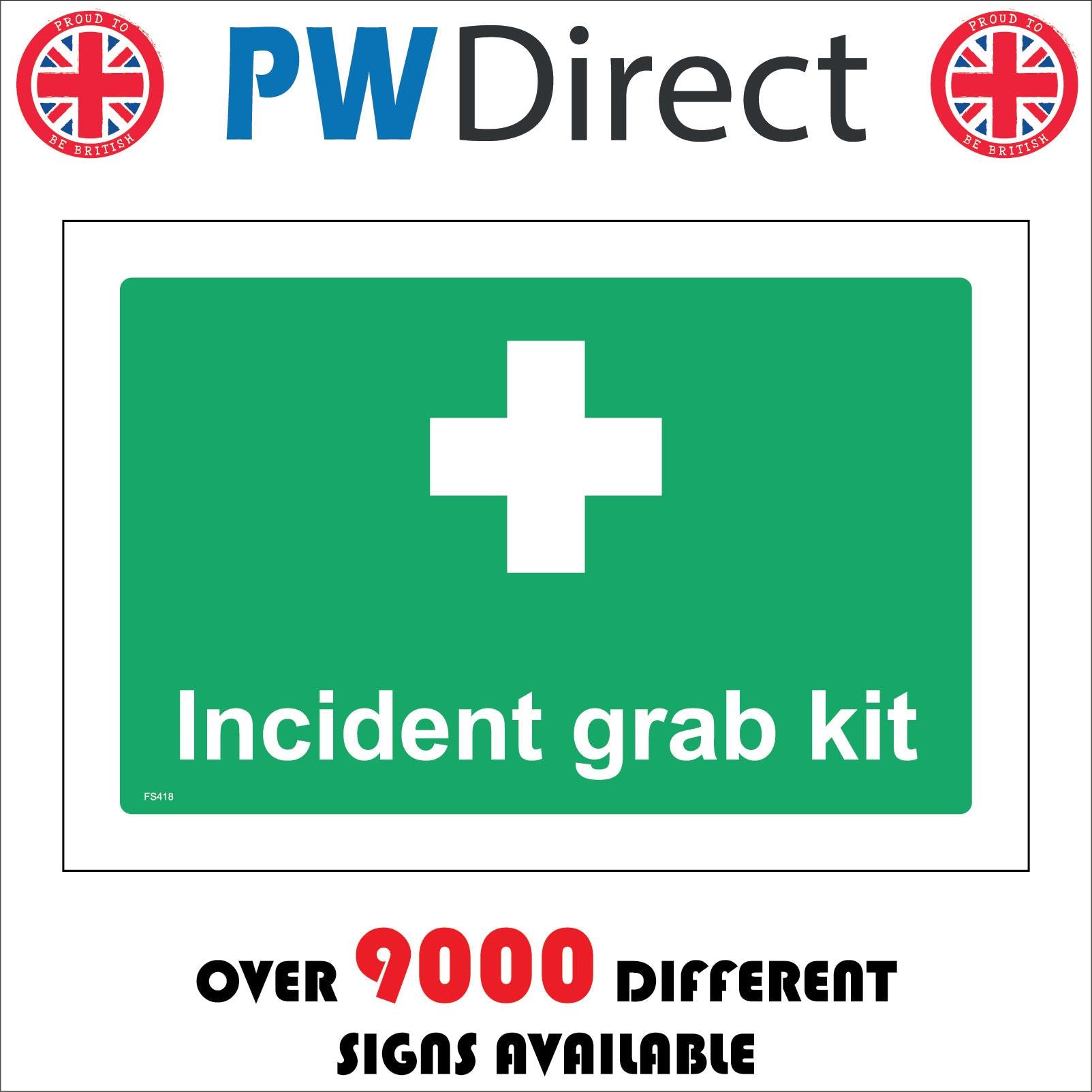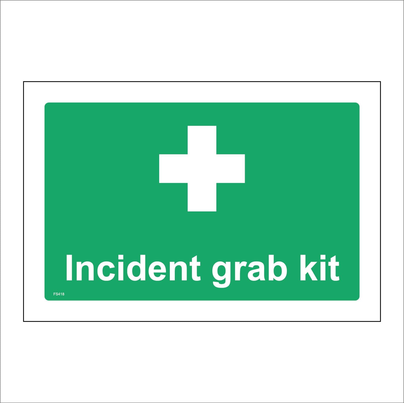 The format of the standard FS418 sign is Billboard Landscape and displays a White White Cross/Incident Grab Kit Right Arrow White Cross text on a Green Background.