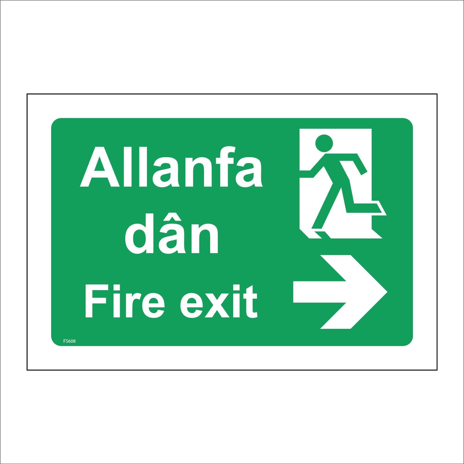 The FS608 Allanfa Dan Fire Exit Running Man Right Arrow Bilingual is part of our Fire Safety Sign Range.