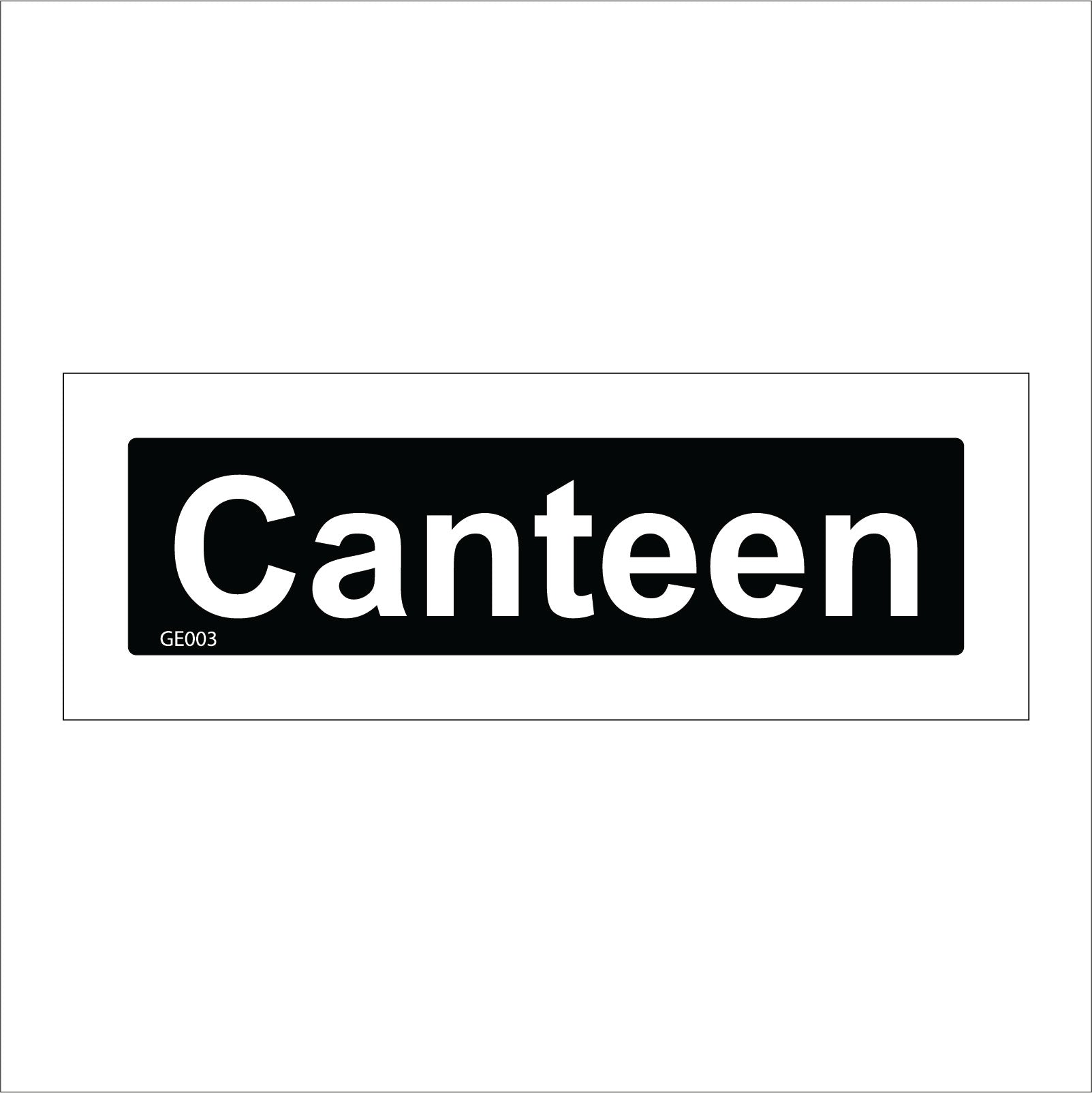 The format of the standard GE003 sign is Long Landscape and displays a White -/Canteen text on a Black Background.