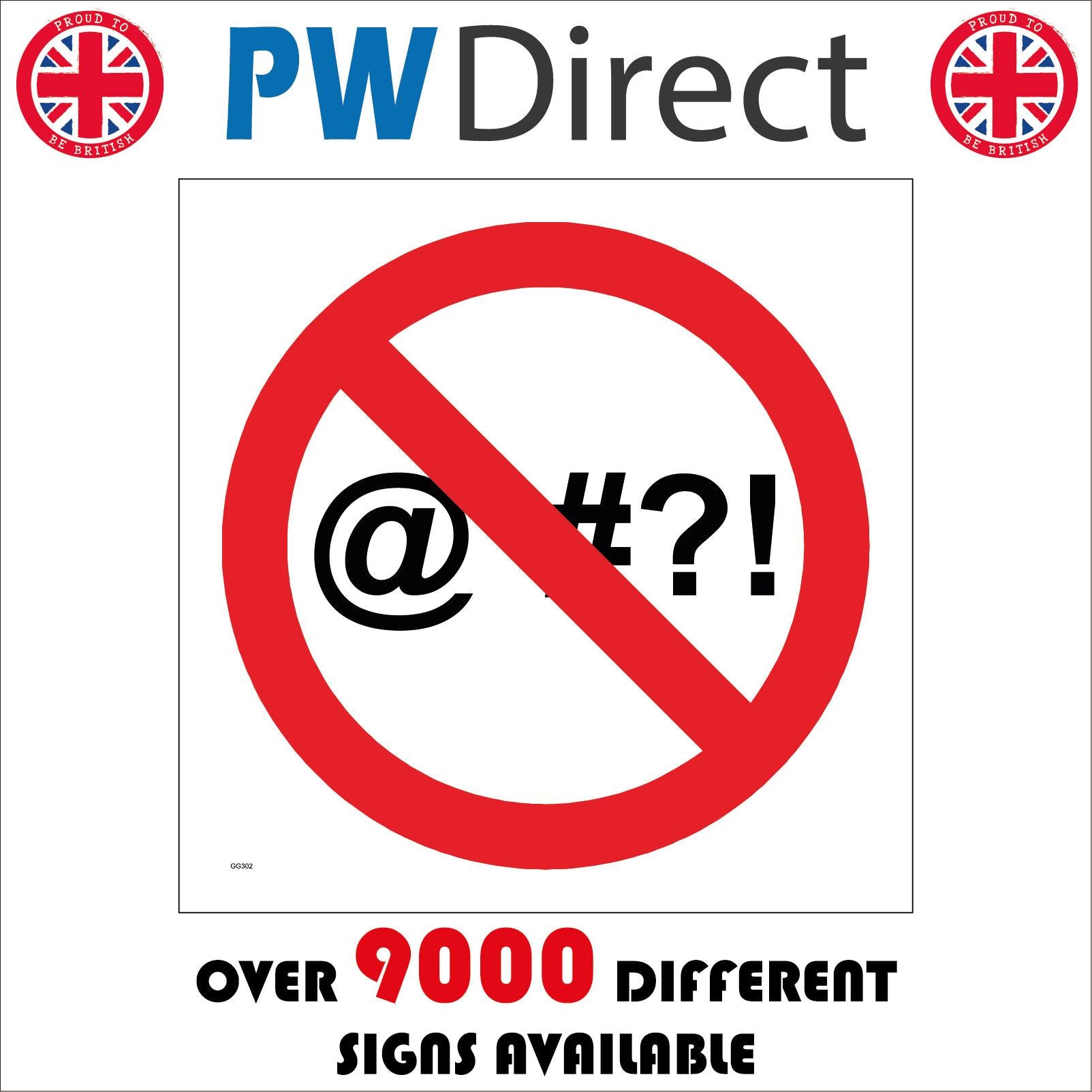 The GG302 No Swearing Symbols Expletives Cussing Four Letter Word is part of our General Sign Range.