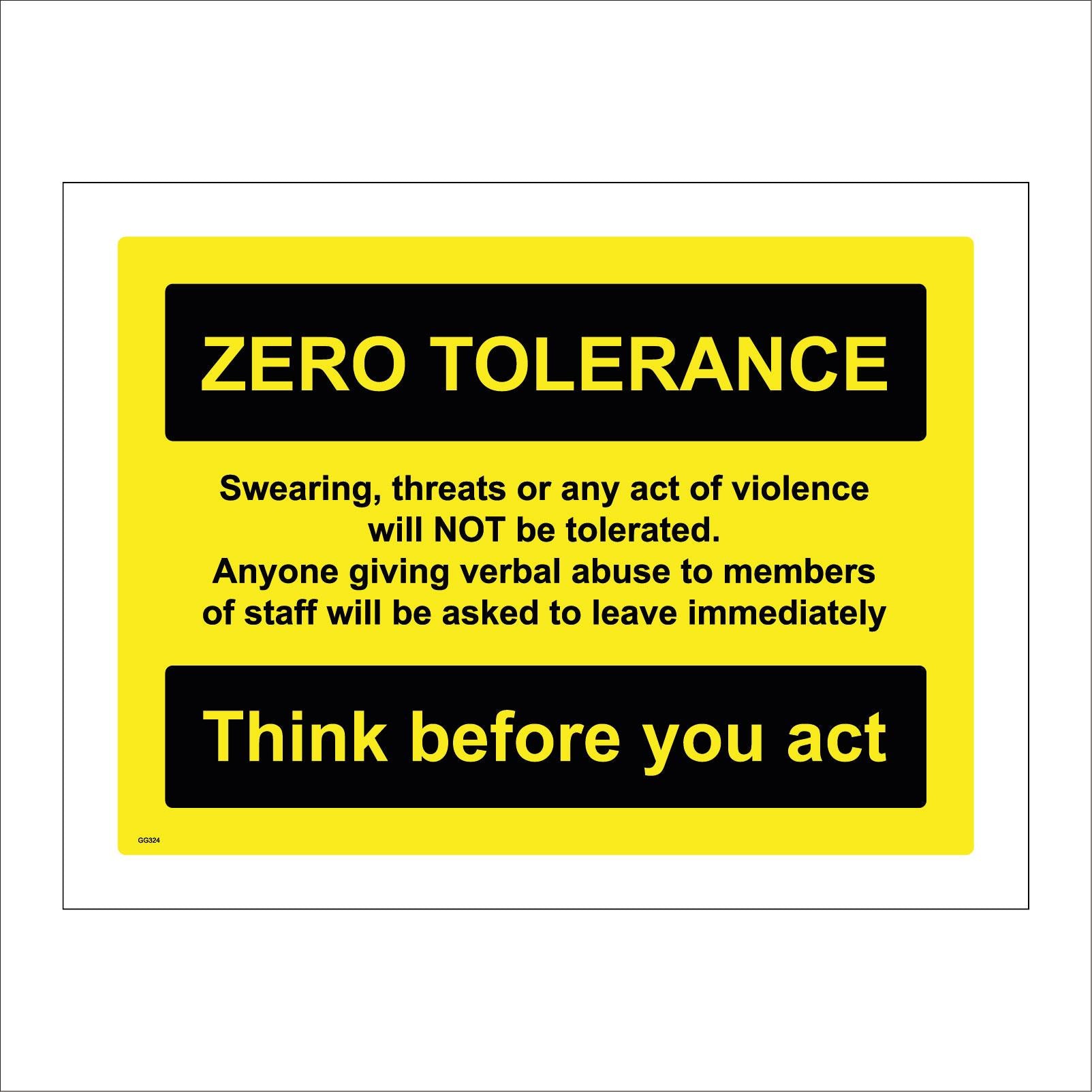 The GG324 Zero Tolerance Think Before You Act Swearing Violence is part of our General Sign Range.