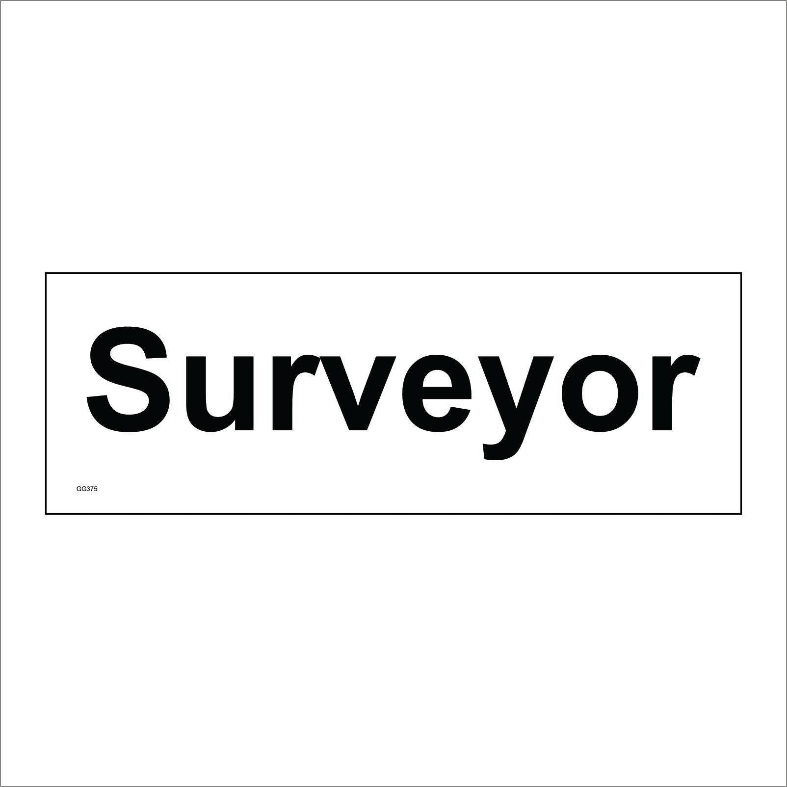 GG375 Surveyor Construction Building Door Plaque Black On White