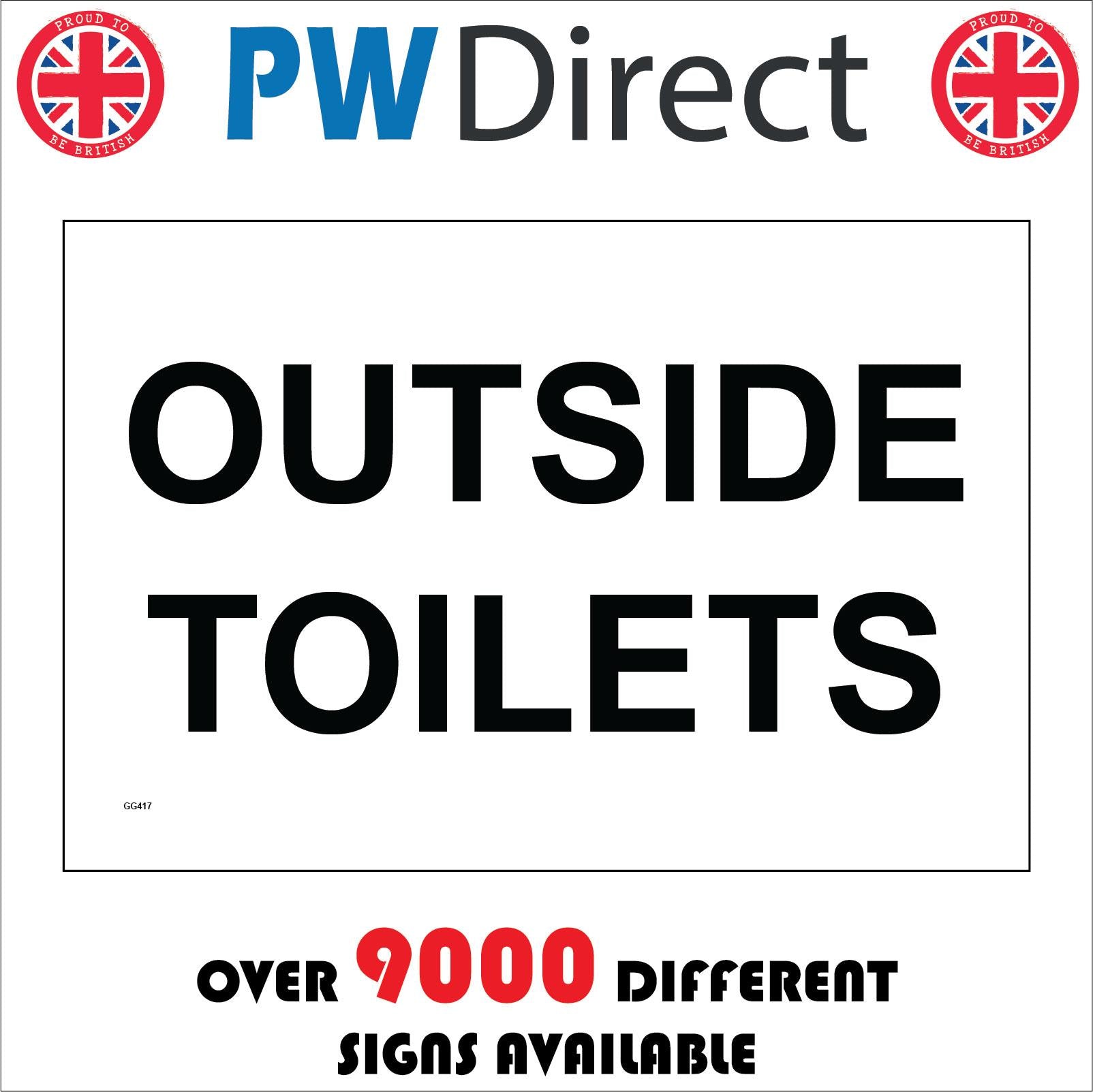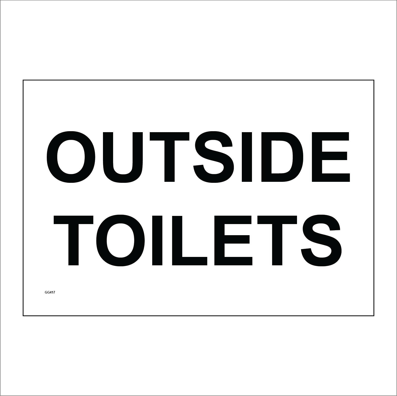 The format of the standard GG417 sign is Billboard Landscape and displays a Black /Outside Toilets text on a White Background.
