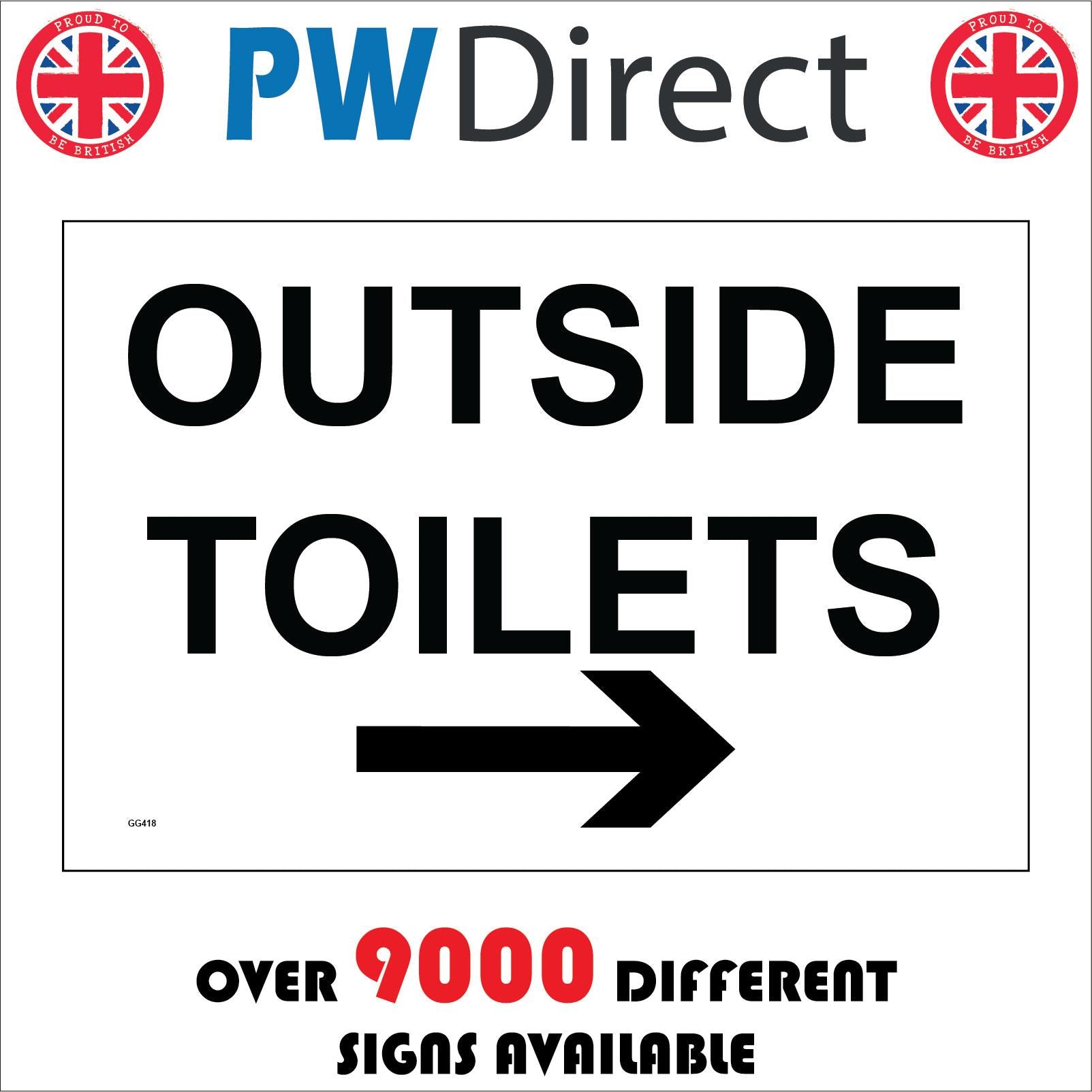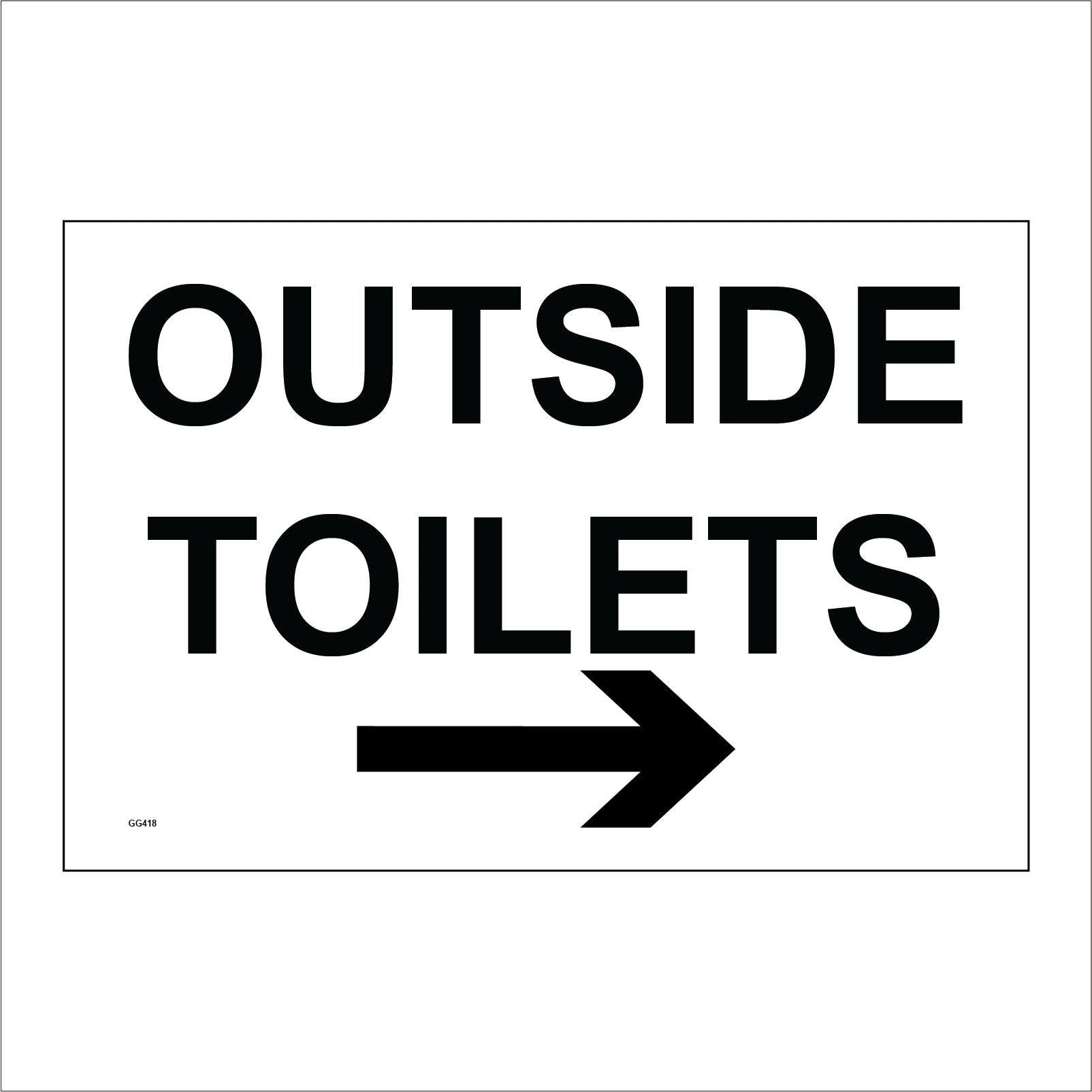 The format of the standard GG418 sign is Billboard Landscape and displays a Black Left Arrow/Outside Toiet Right Arrow text on a White Background.