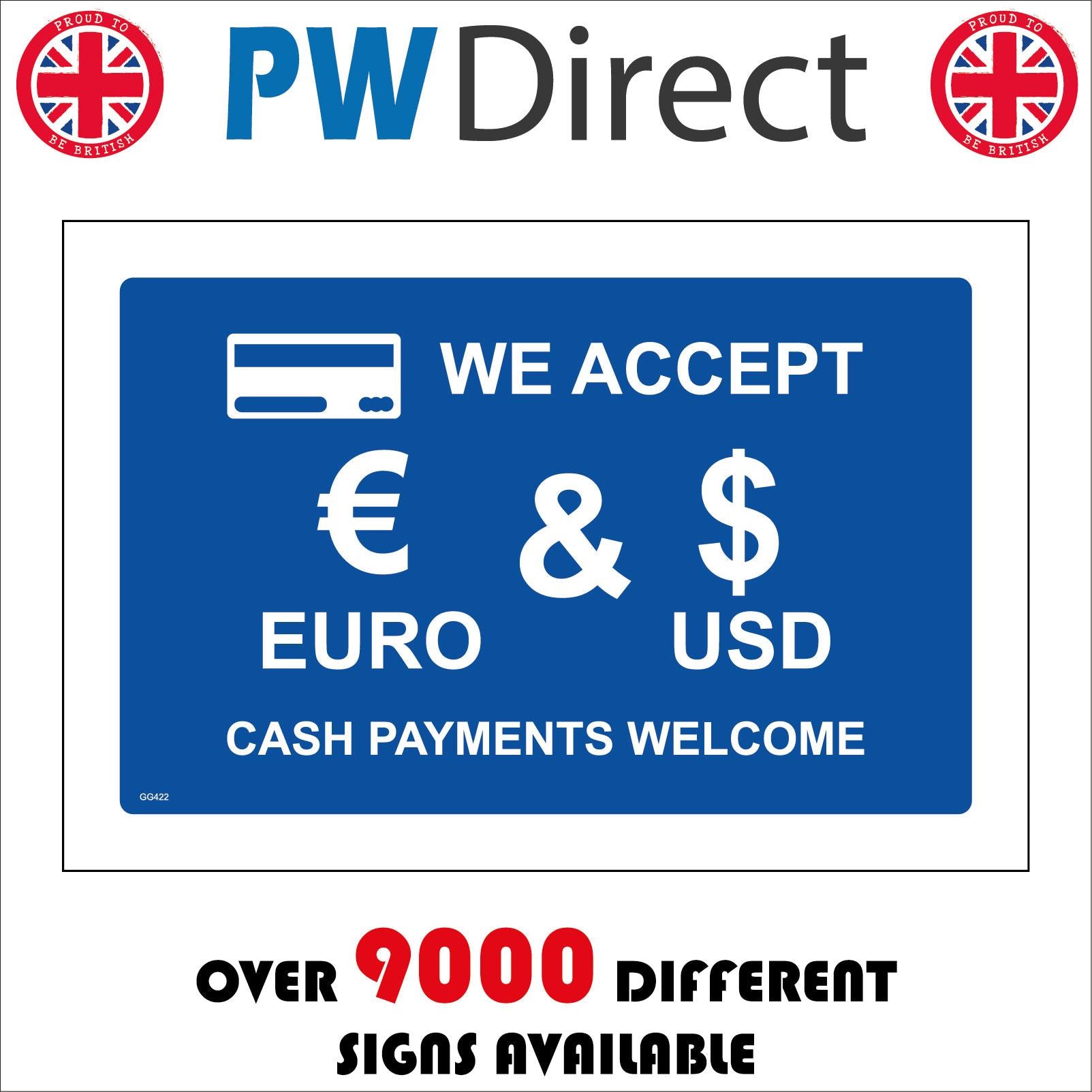 GG422 We Accept Euro USD Cash Payments Welcome