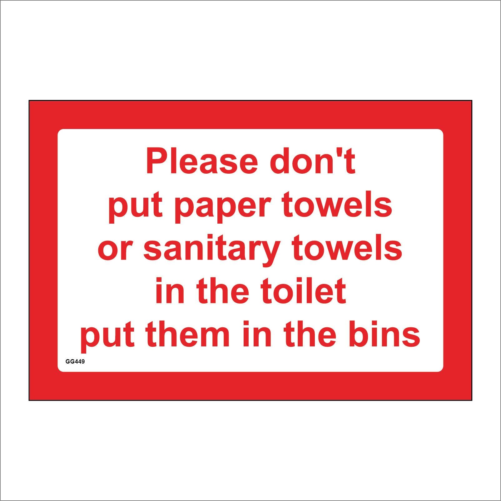 The GG449 Do Not Put Paper Towels Sanitary Items In Toilet Use Bin is part of our General Sign Range.