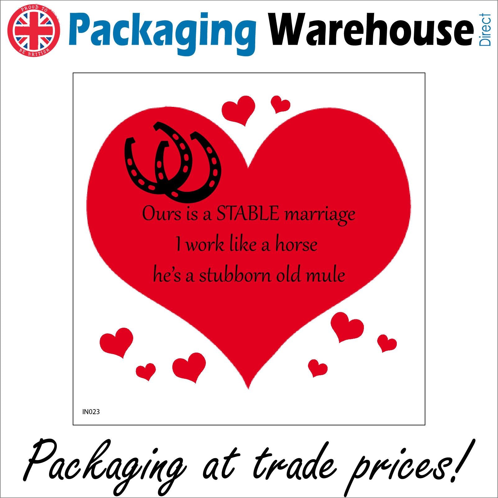 IN023 Ours Is A Stable Marriage I Work Like A Horse He's A Stubborn Old Mule Sign with Heart Horseshoe