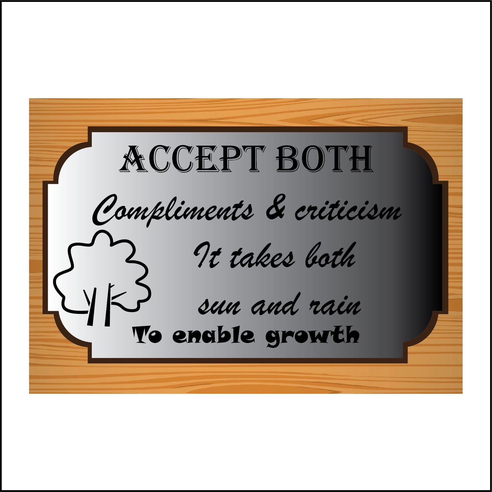 The IN186 Accept Both Compliments And Criticism For Growth Sign with Tree is part of our Inspirational Sign Range.