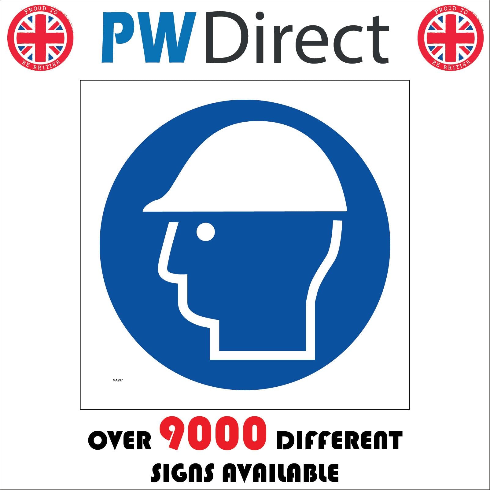 The format of the standard MA997 sign is Square and displays a White Hard Hat/Wear Hard Hat text on a Blue Background.
