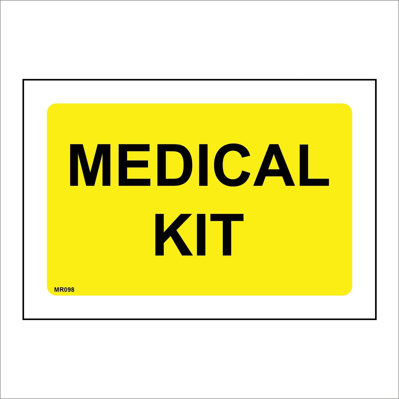 The format of the standard MR098 sign is Billboard Landscape and displays a Black /Medical Kit text on a Yellow Background.