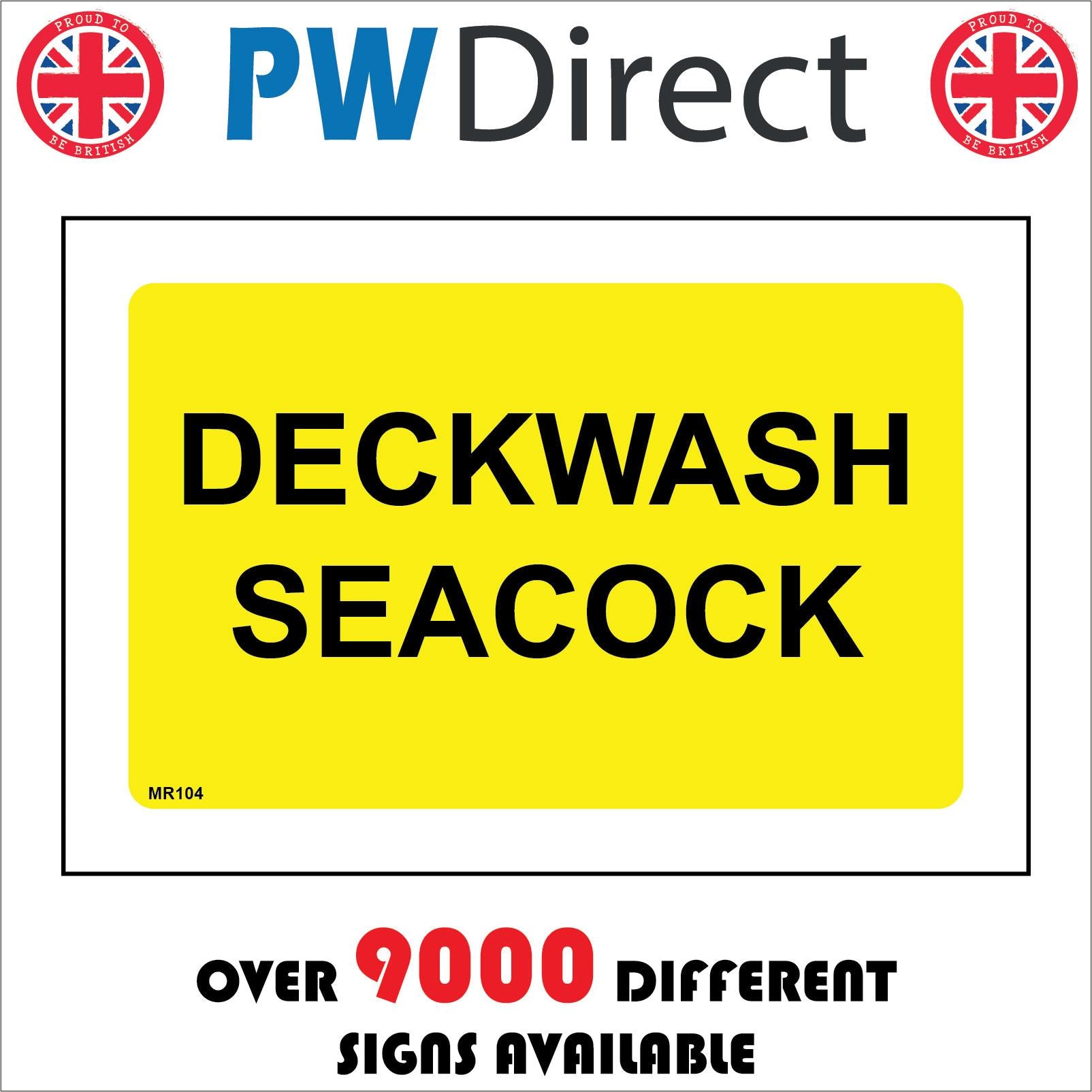 The format of the standard MR104 sign is Billboard Landscape and displays a Black /Deckwash Seacock text on a Yellow Background.