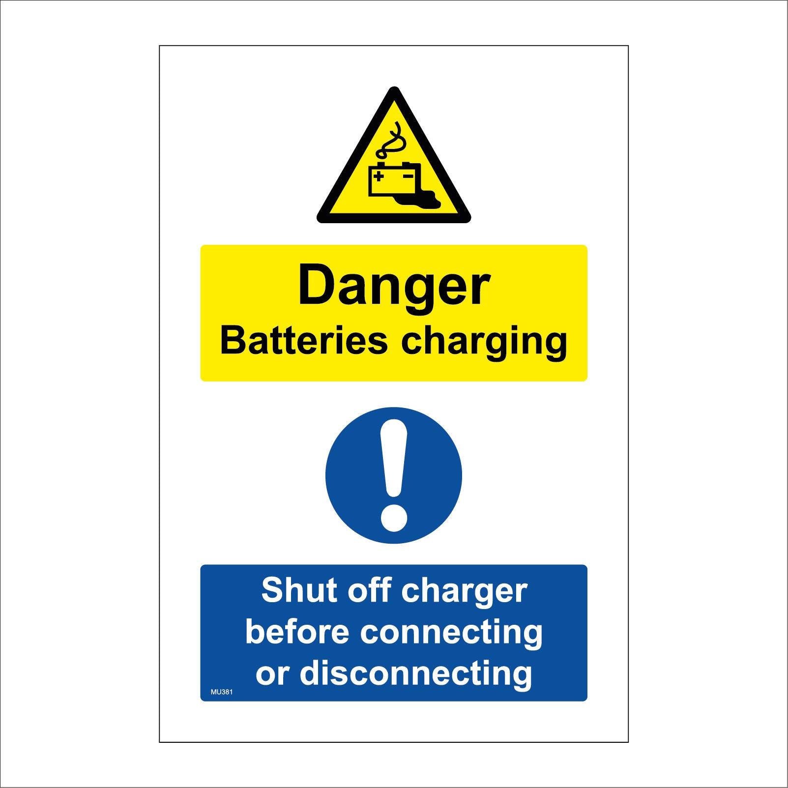 The MU381 Danger Batteries Charging Shut Off Charger is part of our Multiple Sign Range.