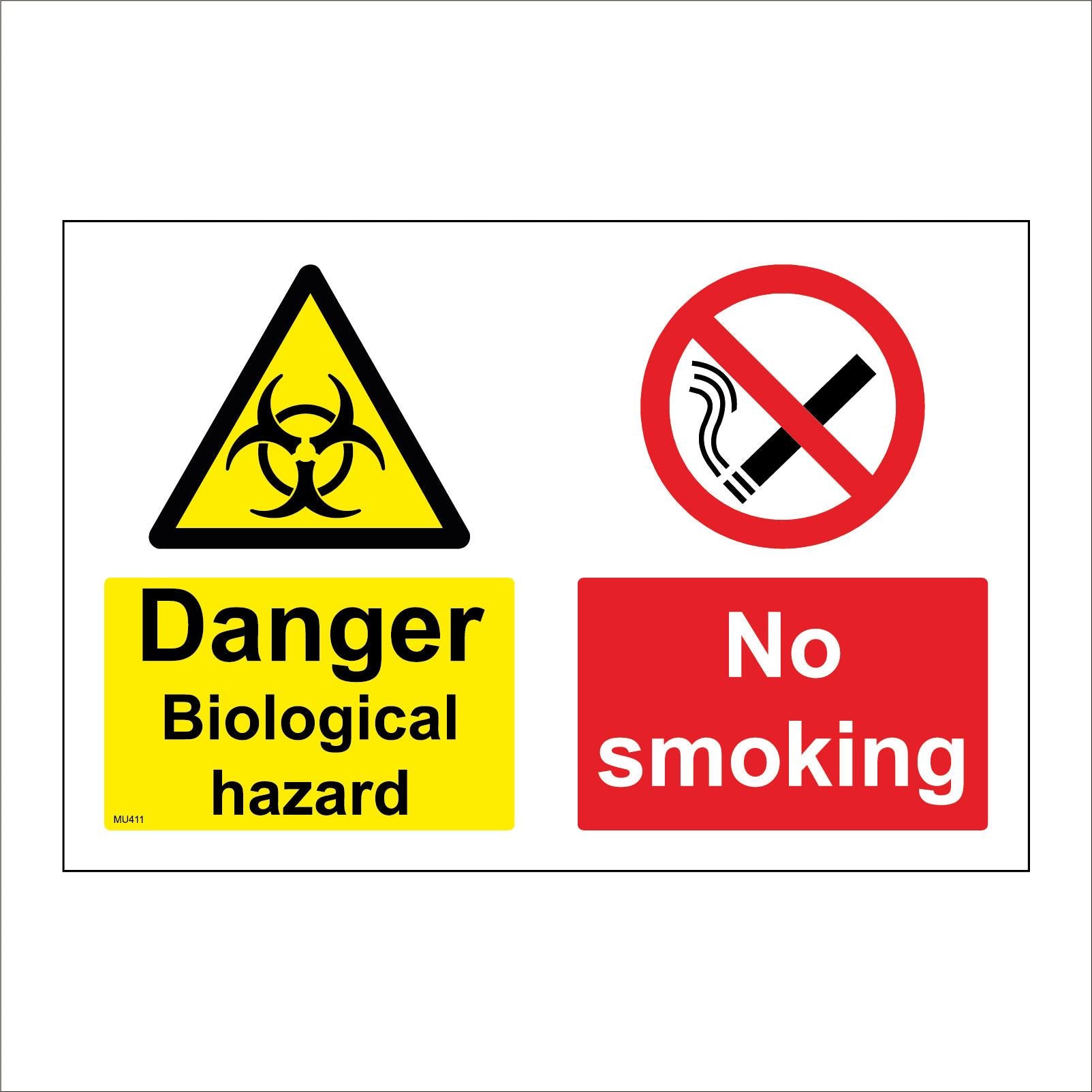 The MU411 Danger Biological Hazard No Smoking is part of our Multiple Sign Range.