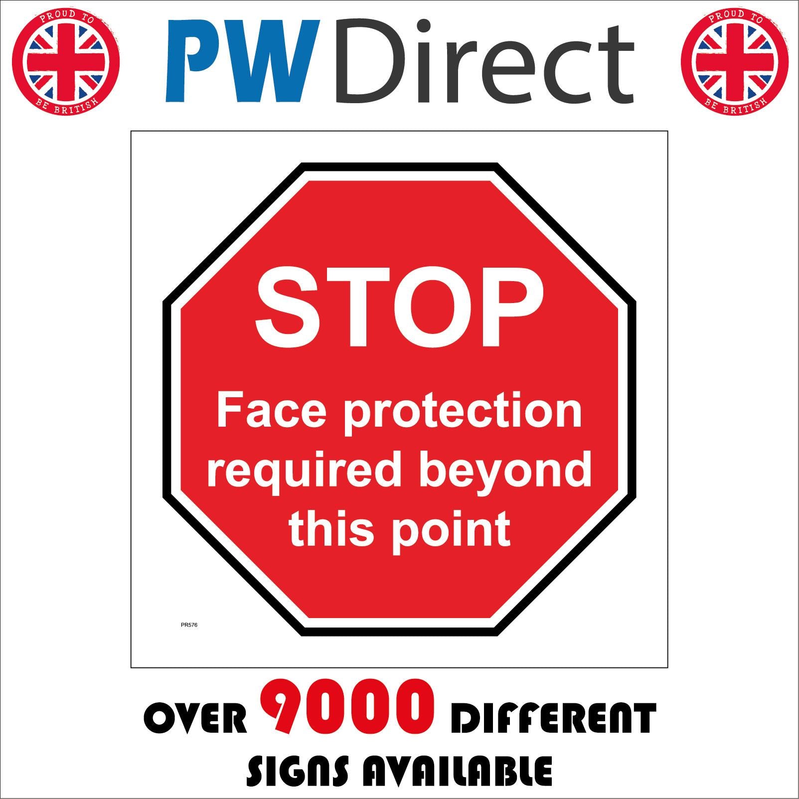 The format of the standard PR576 sign is Square and displays a White /Stop Face Protection Required Beyond This Point text on a Red Background.