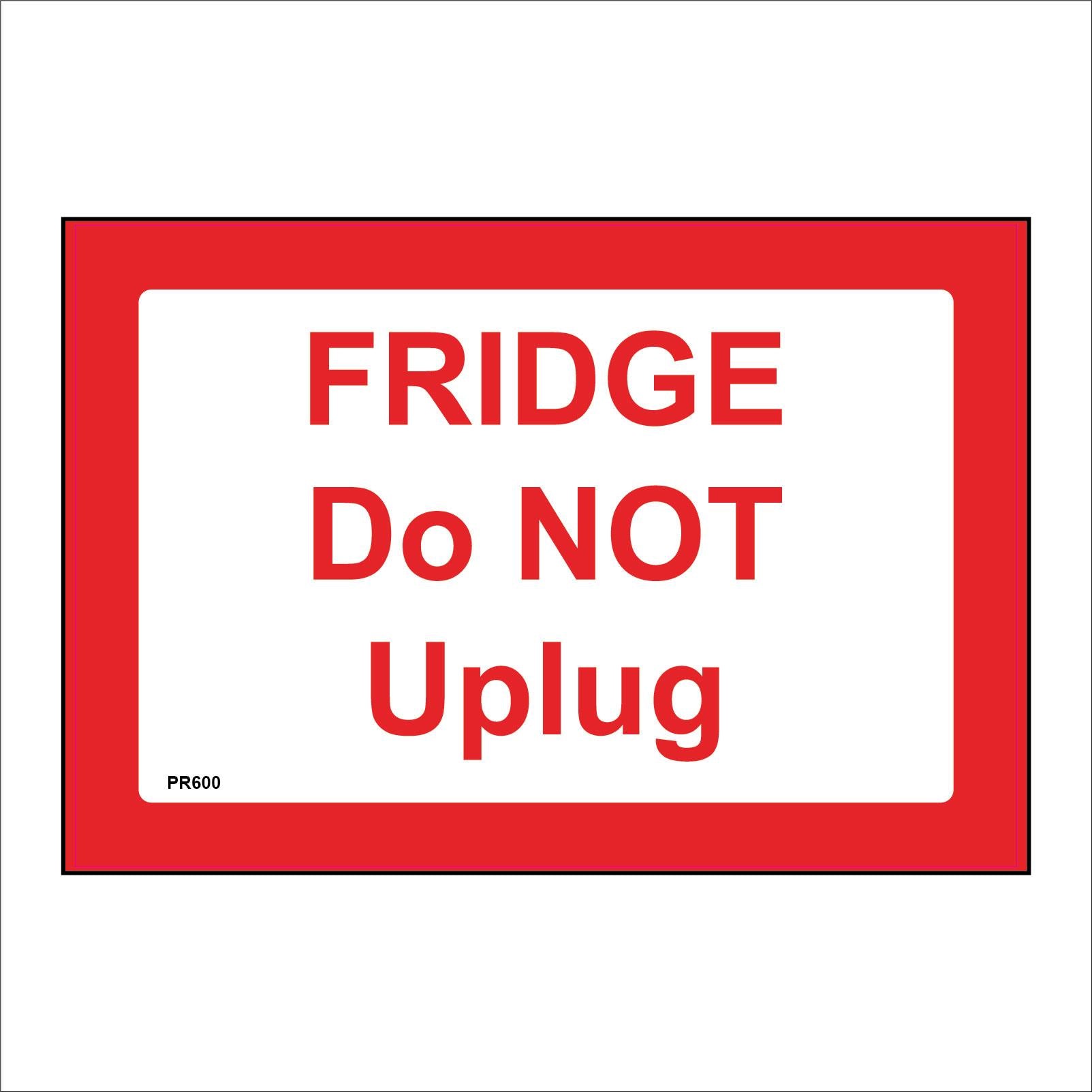 The PR600 Fridge Do Not Unplug is part of our Prohibition Sign Range.