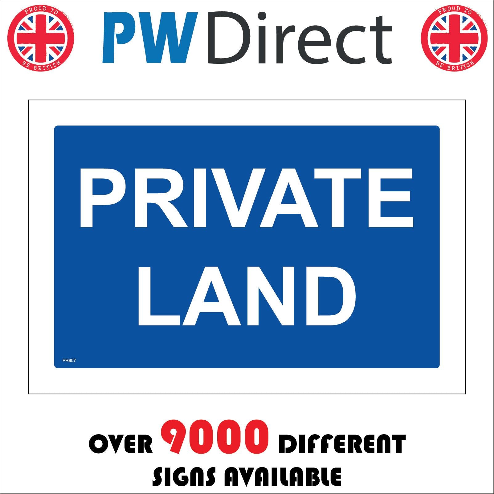 The format of the standard PR607 sign is Billboard Landscape and displays a White /Private Land White On Blue text on a Blue Background.