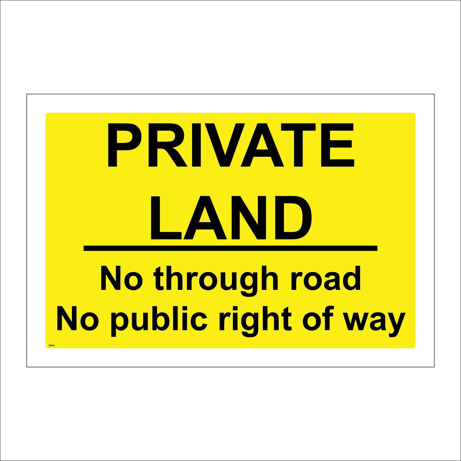 The format of the standard PR611 sign is Billboard Landscape and displays a Black /Private Land No Through Road No Public Right Of Way text on a Yellow Background.
