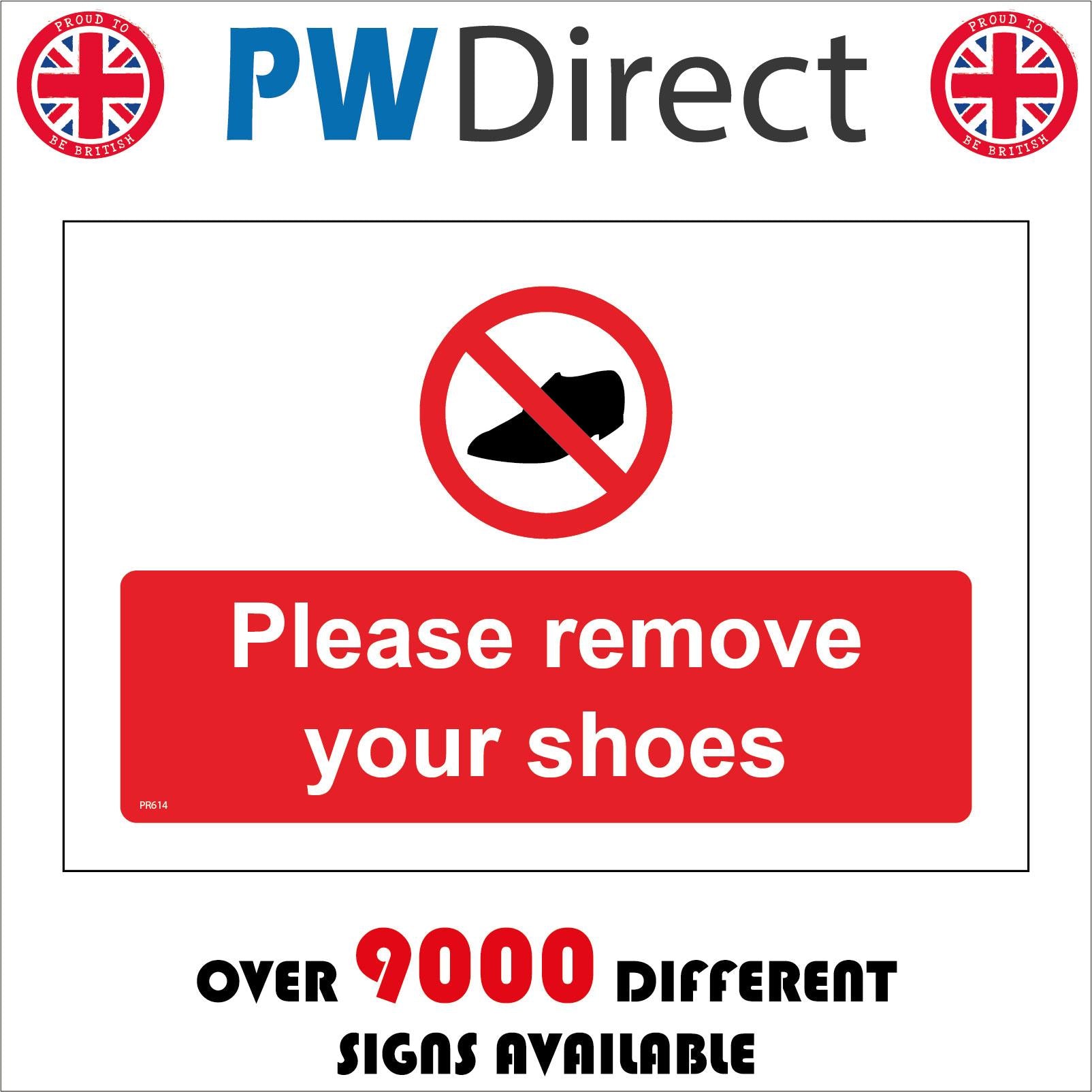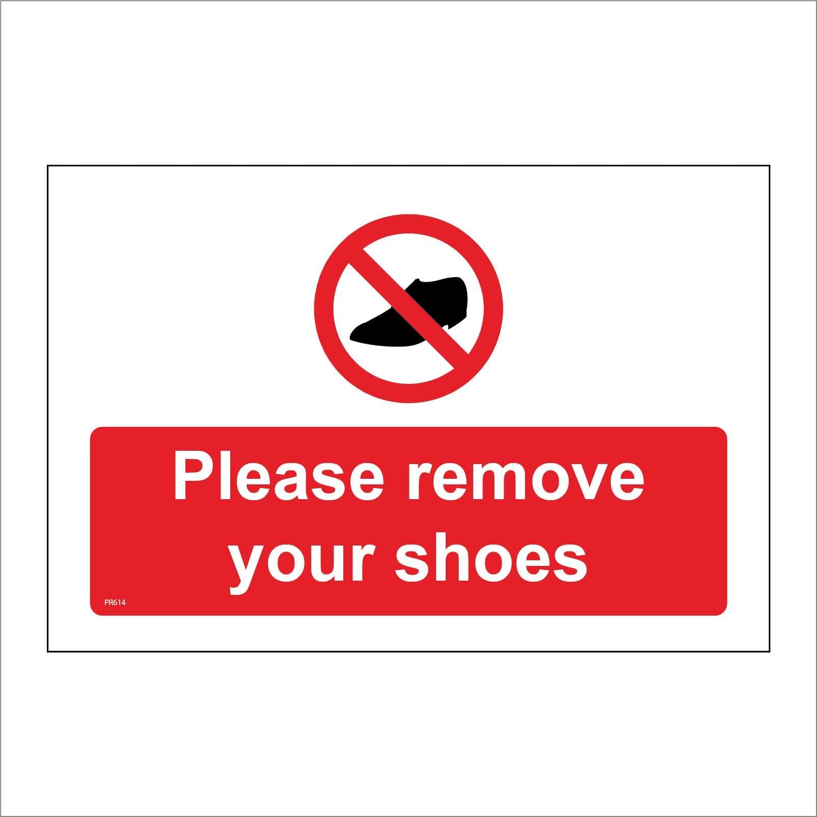 The PR614 Please Remove Your Shoes is part of our Prohibition Sign Range.