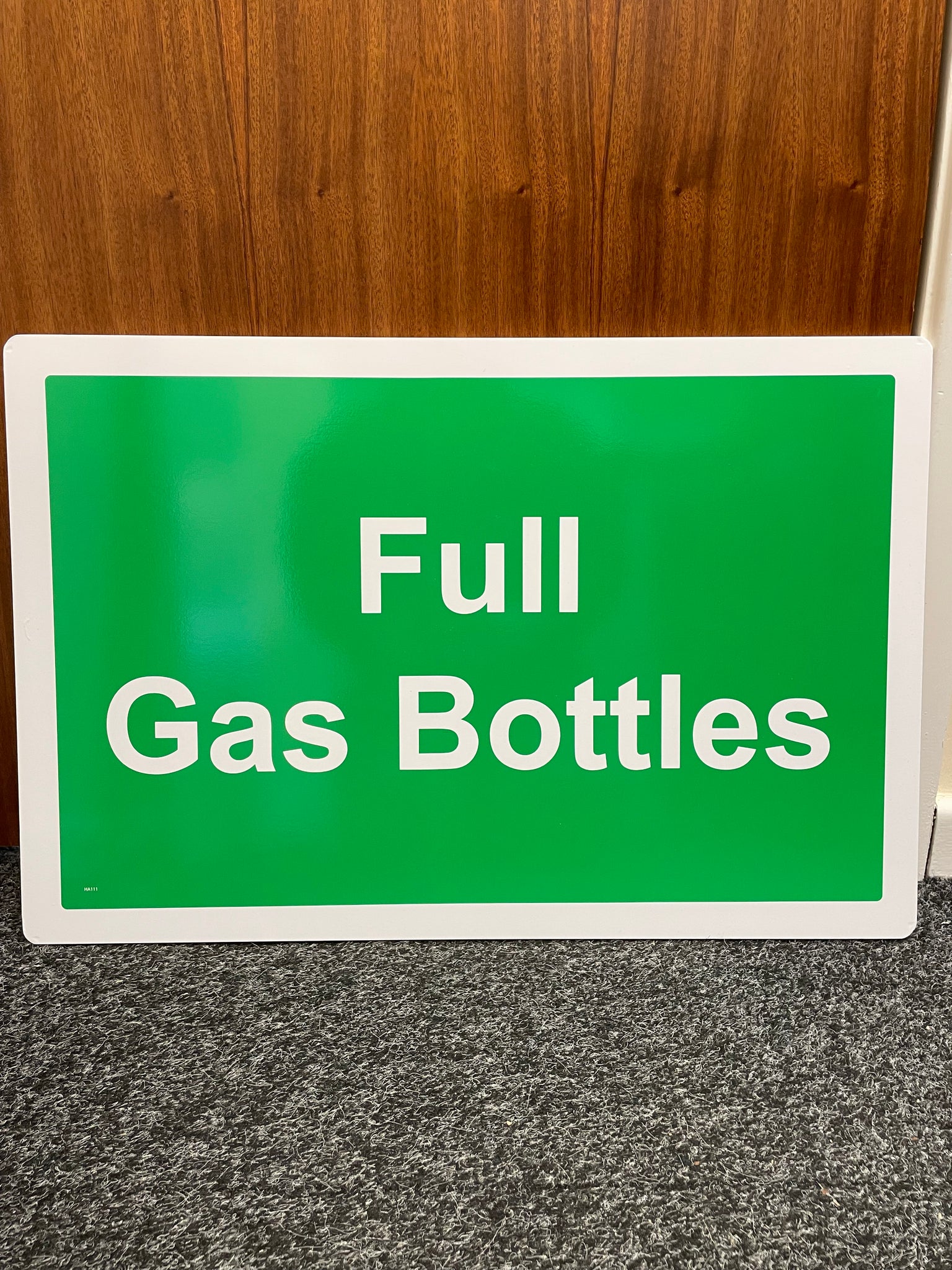 Full Gas Bottles Sign, 600 x 400mm 10mm Foamex Green background white text. RHA111