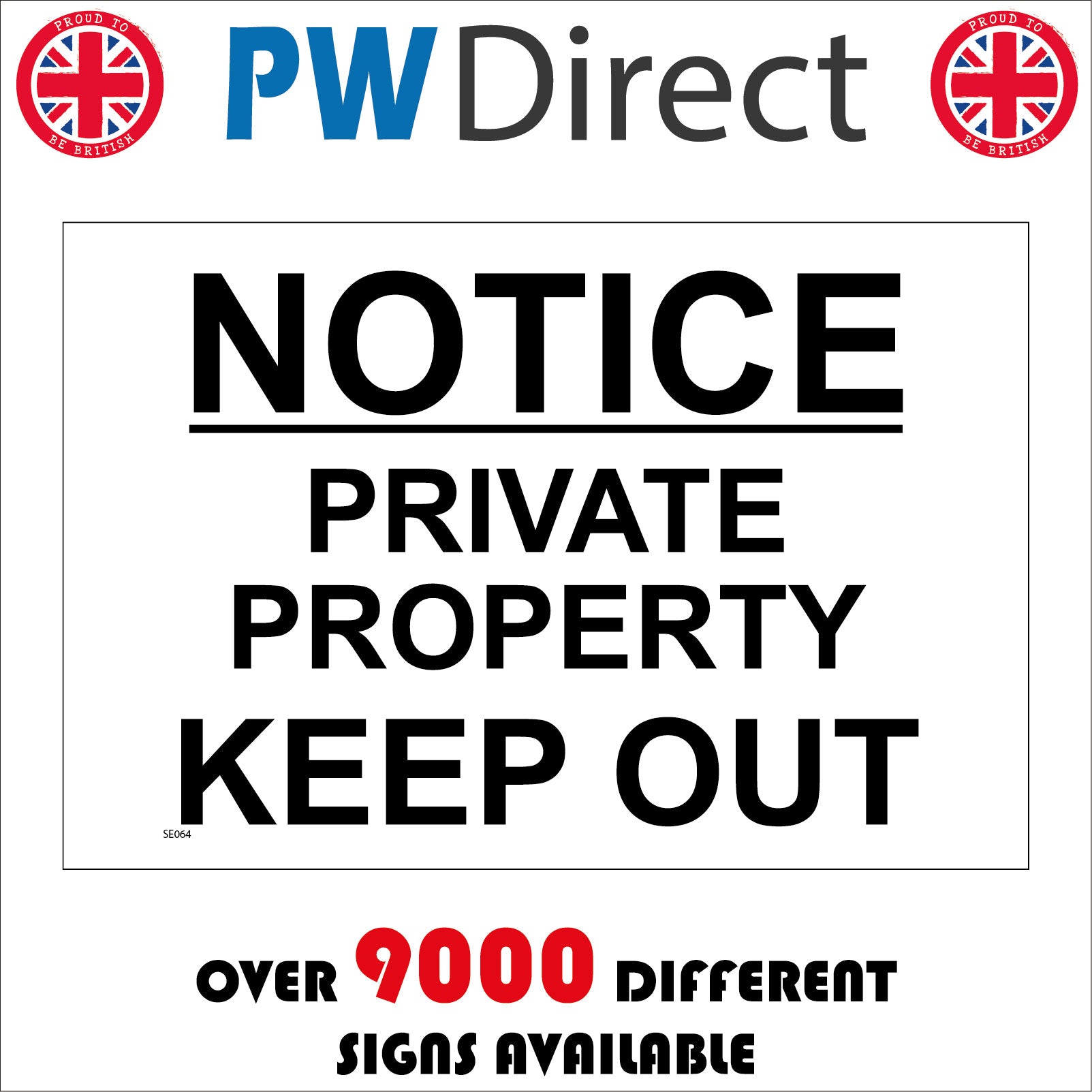 The format of the standard SE064 sign is Billboard Landscape and displays a Black -/Notice Private Property Keep Out text on a White Background.