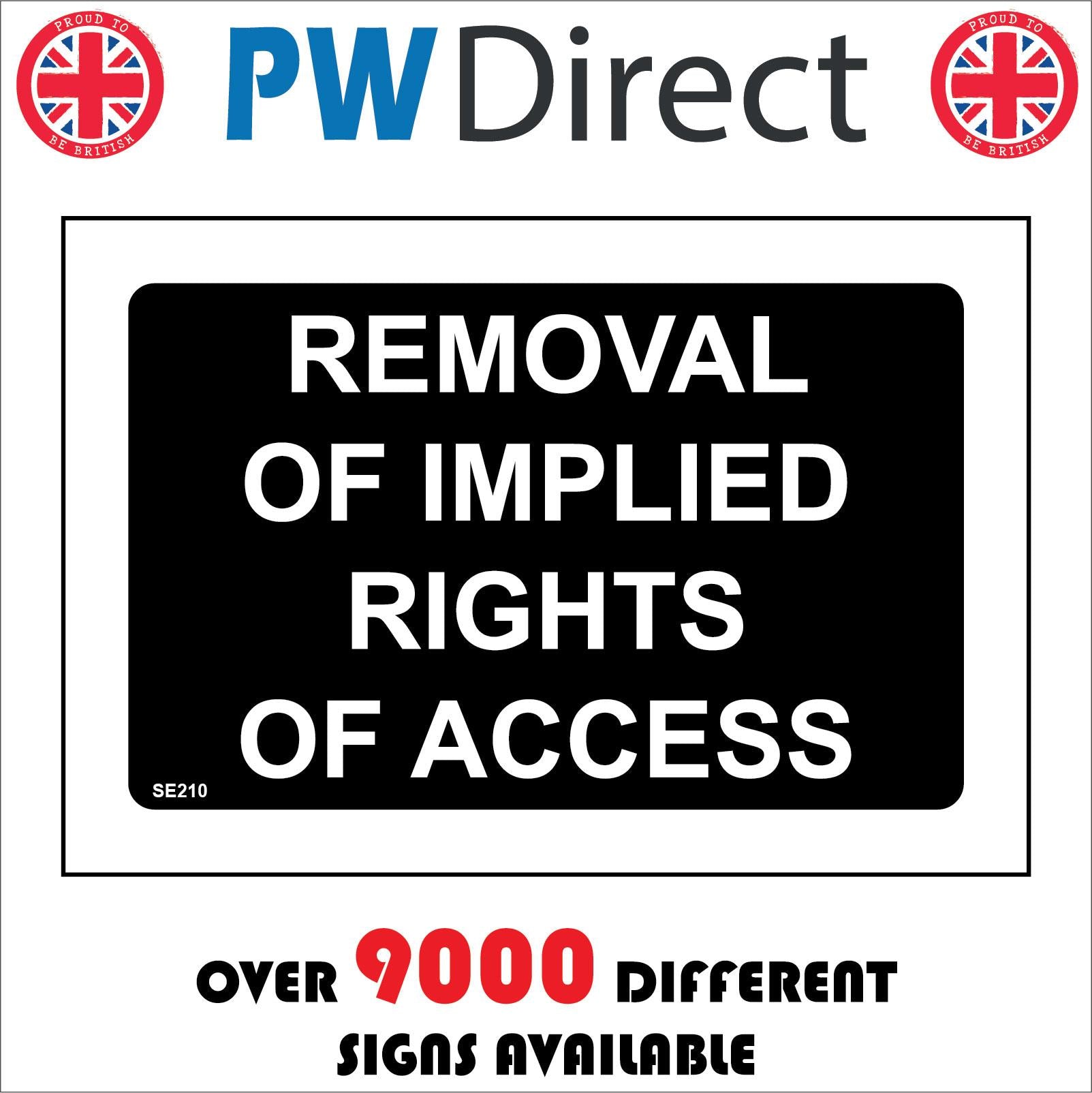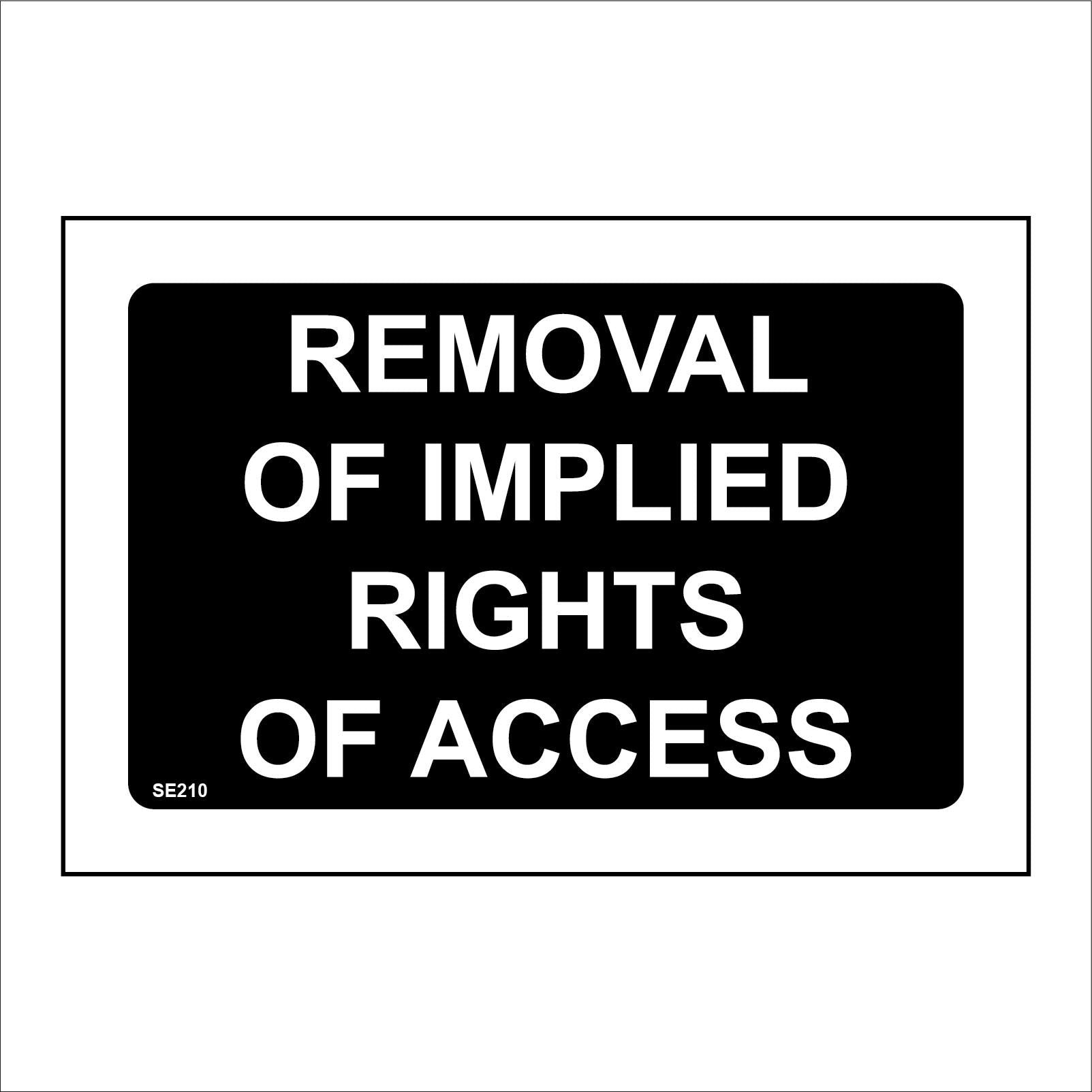 The format of the standard SE210 sign is Billboard Landscape and displays a White /Removal Of Implied Rights Of Access text on a Black Background.