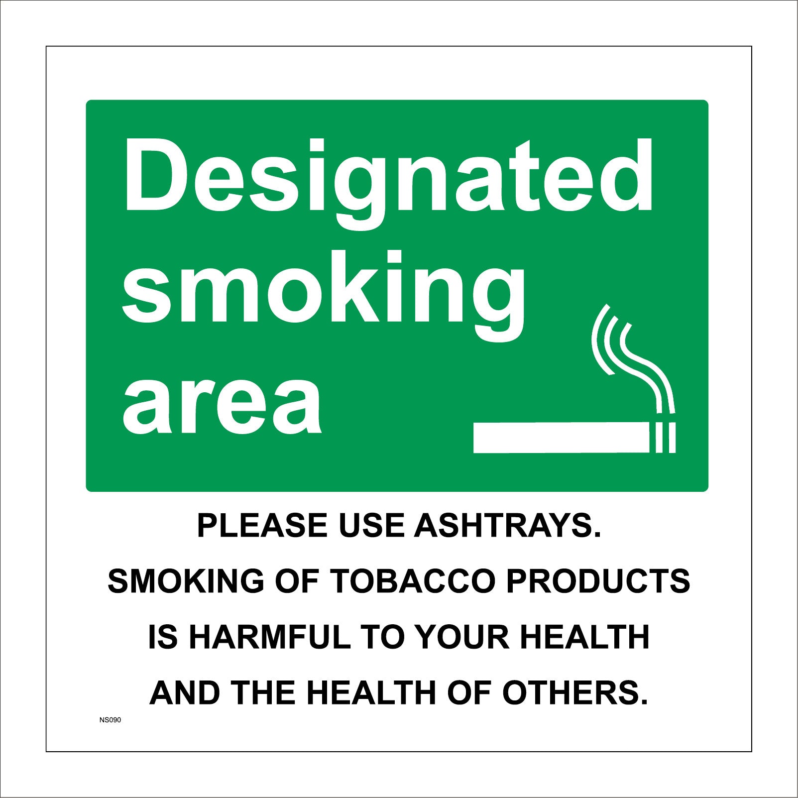 NS090 Designated Smoking Area Use Ashtrays Harmful To Health