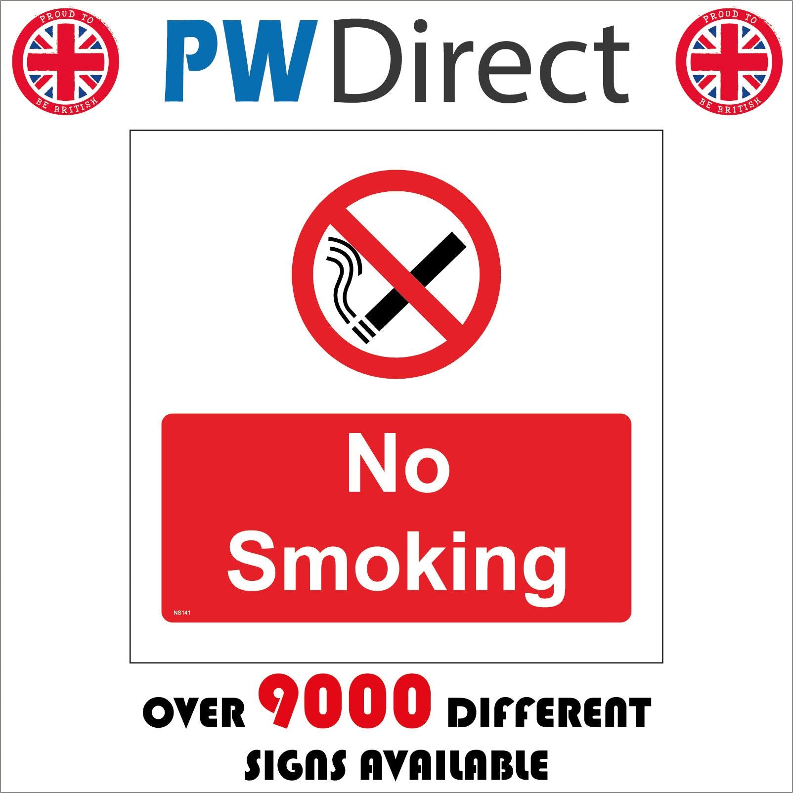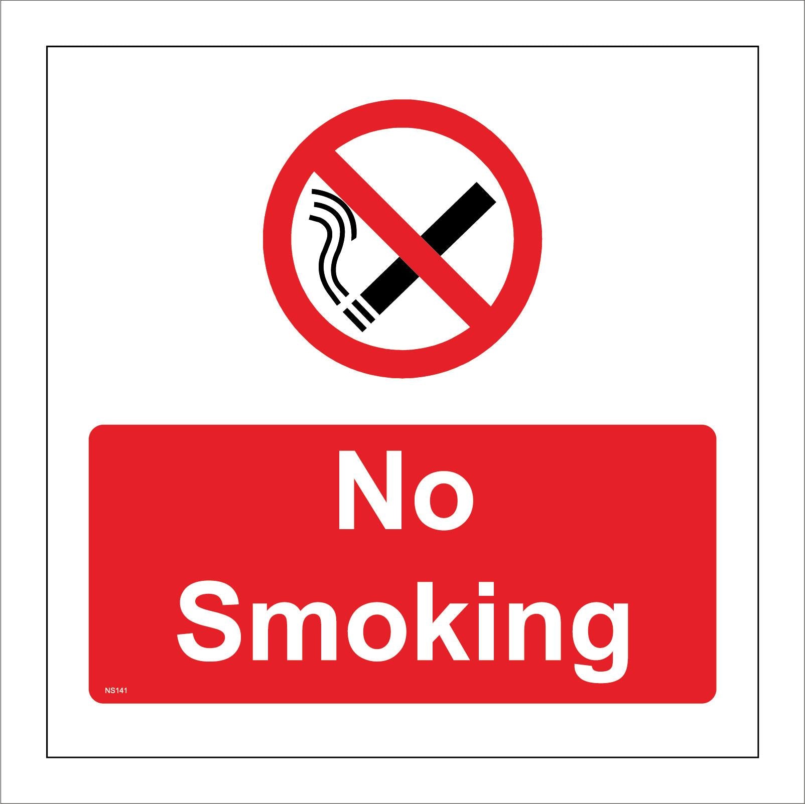 The format of the standard NS141 sign is Square and displays a Red/Black Circle Cigarette Diagonal Line/No Smoking text on a White/Red Background.